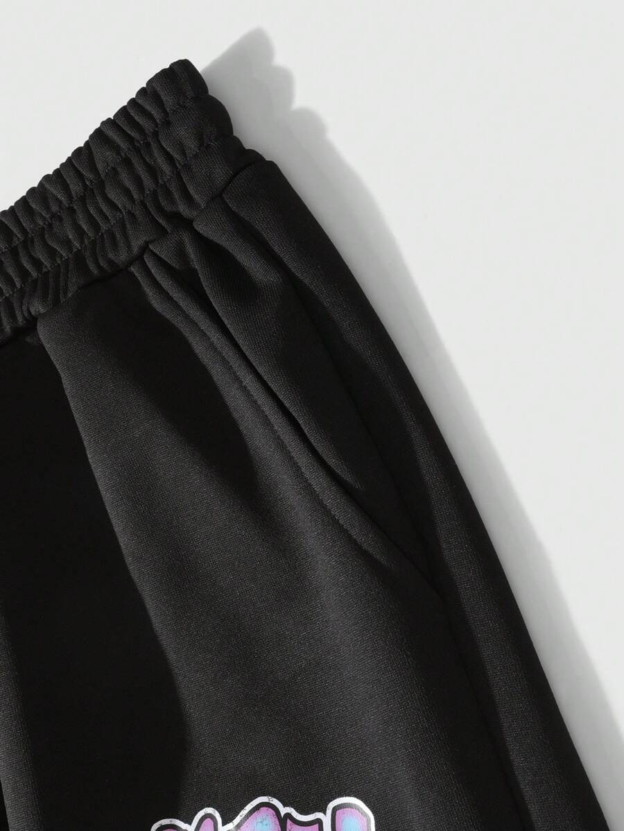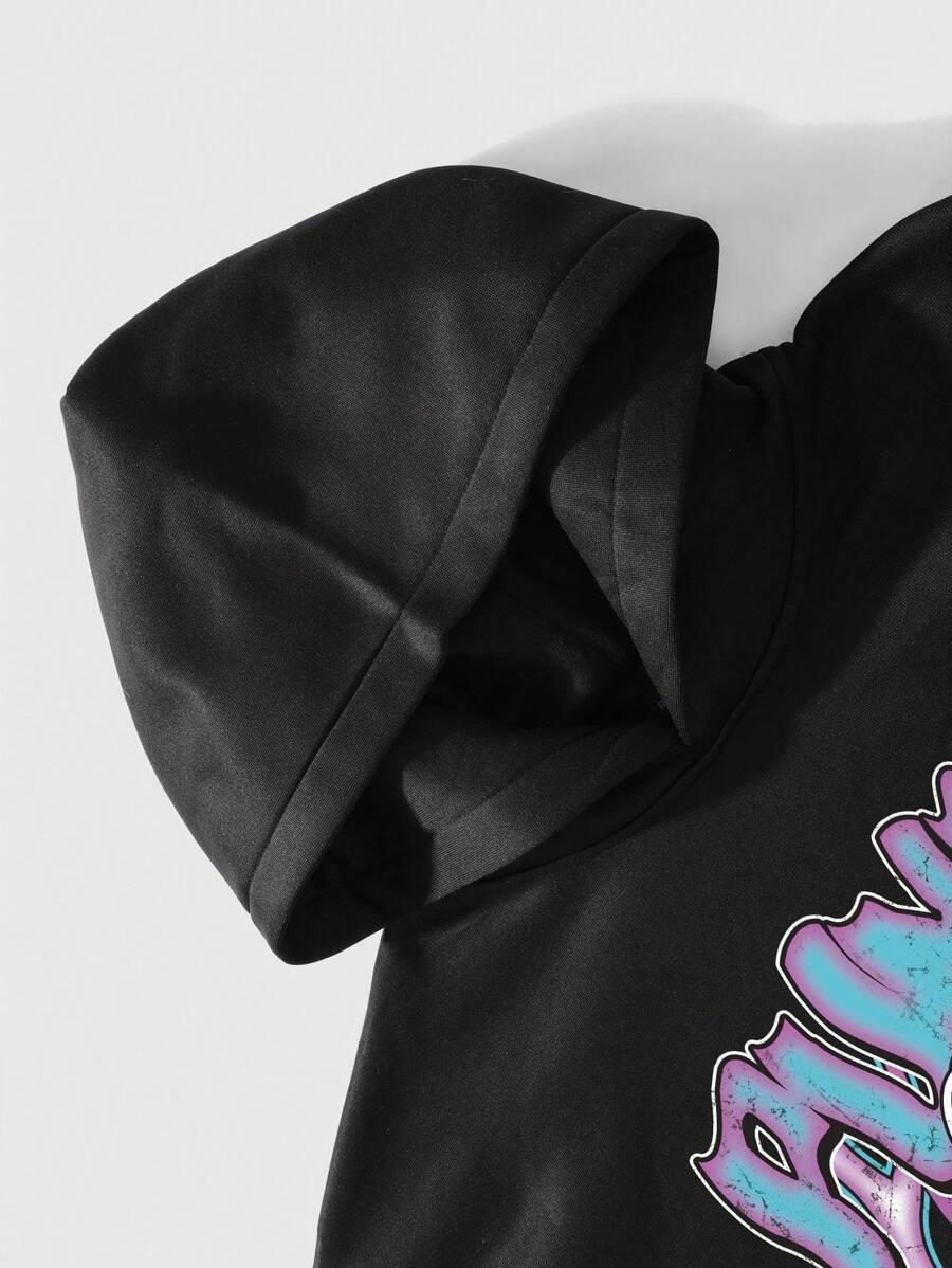 Street Life 1set Men's Loose Crop Hoodie & Pants Tracksuit, Street Style