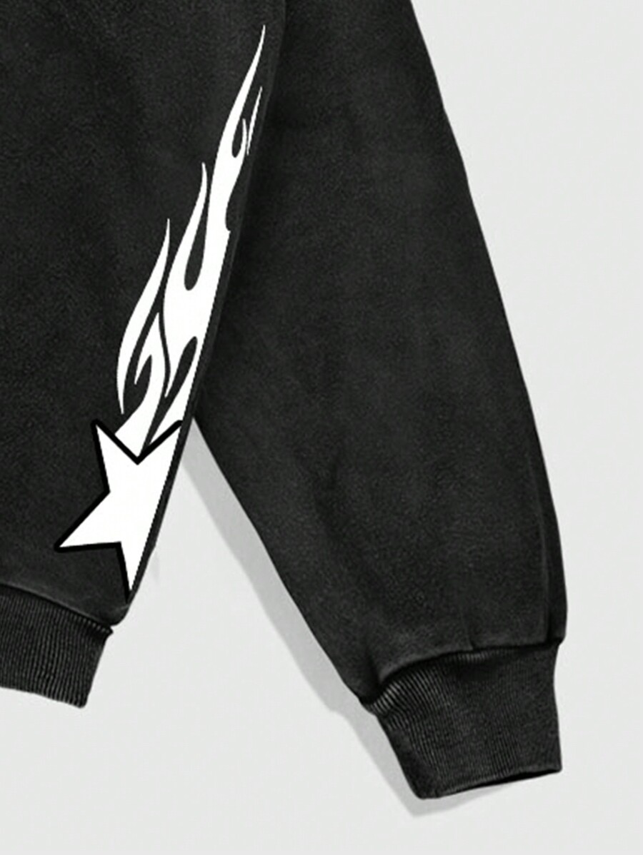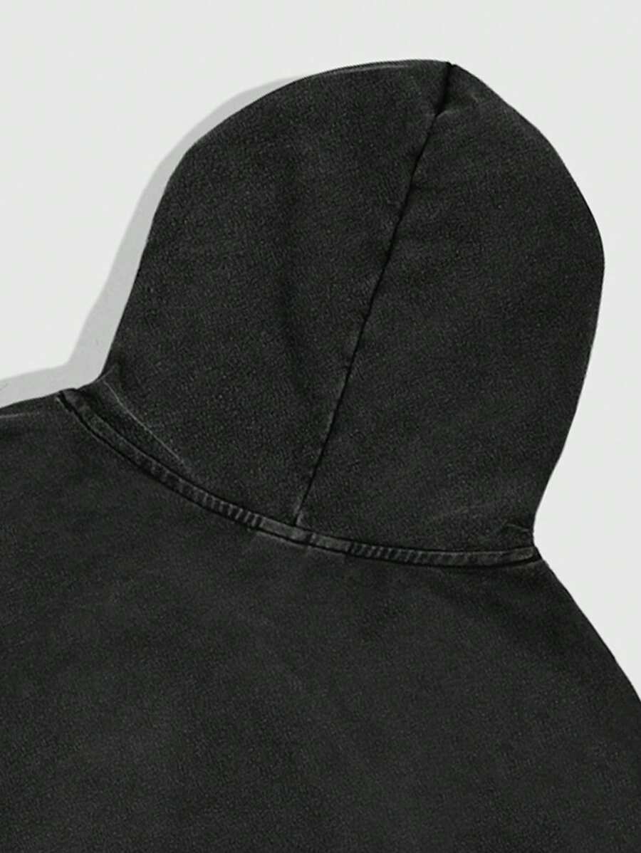 Street Life 2pcs Casual Men Washed Letter Print Hooded Sweatshirt And Sweatpants Tracksuit