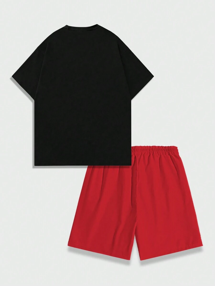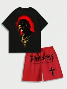 Street Life 2pcs Men Short-Sleeve T-Shirt And Shorts Set With Character Print, Suitable For Daily Wear In Spring And Summer, School