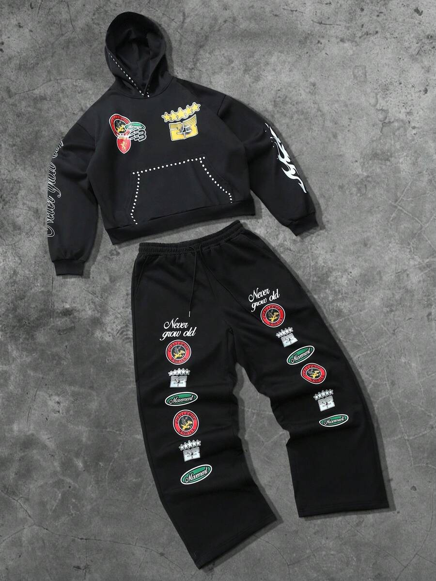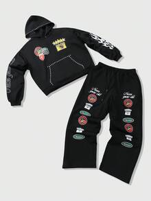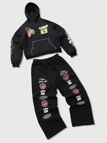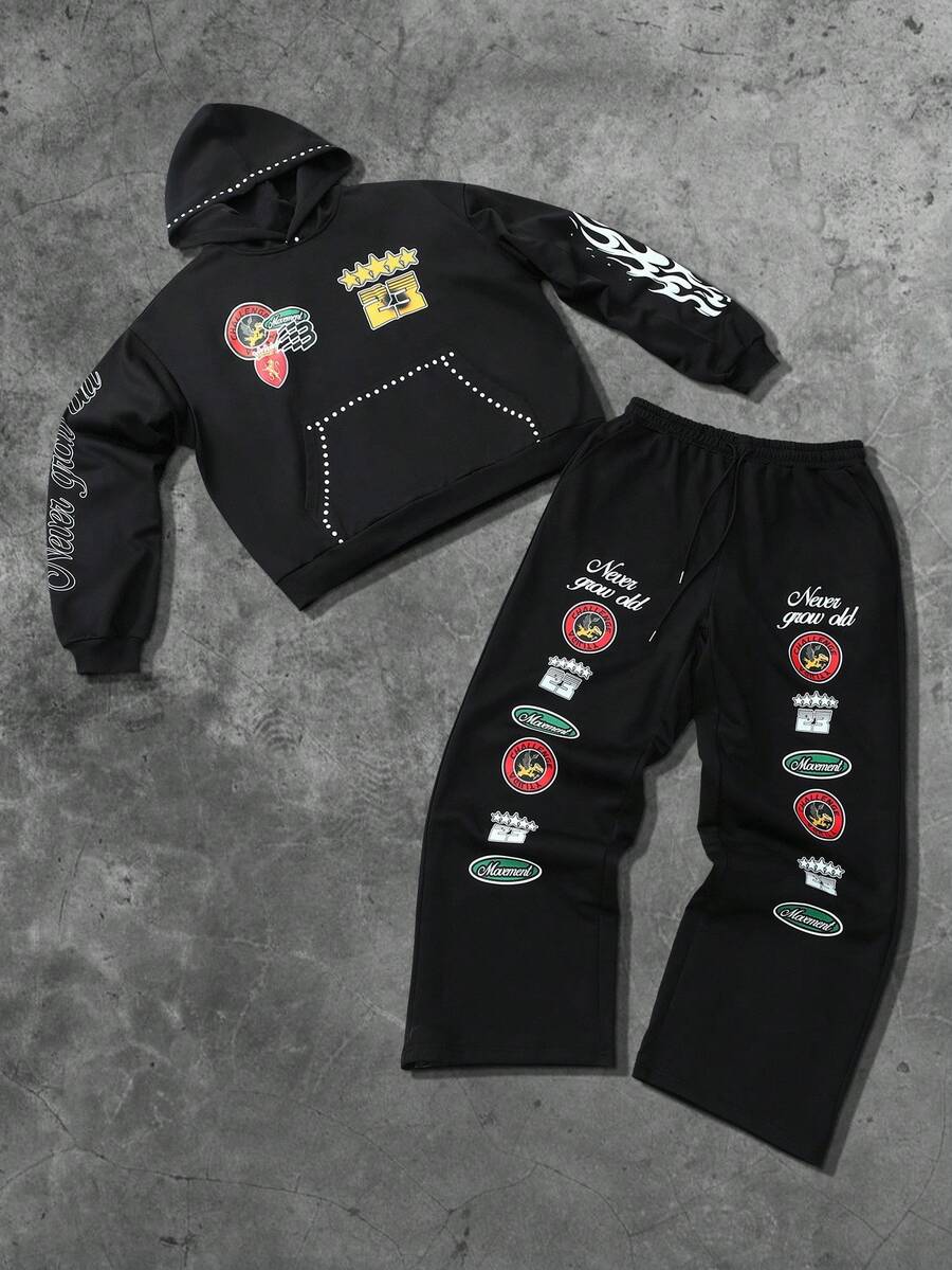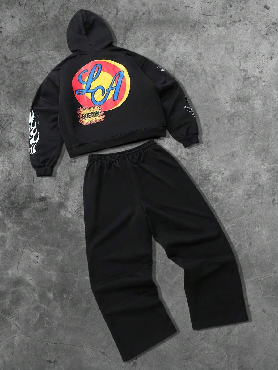 Street Life 2pcs Men Street Graphic Print Hoodie And Sweatpants Set, Suitable For Everyday Wear, Spring/Summer