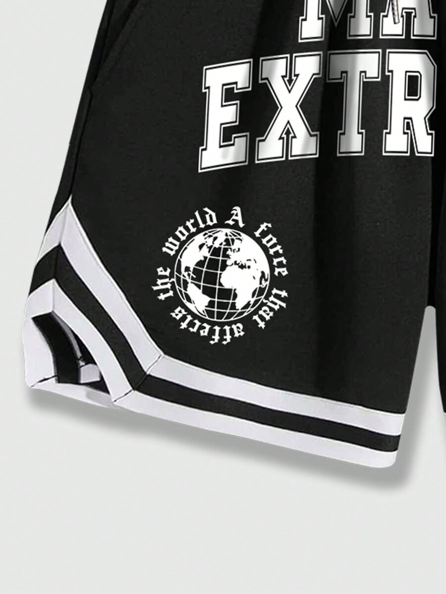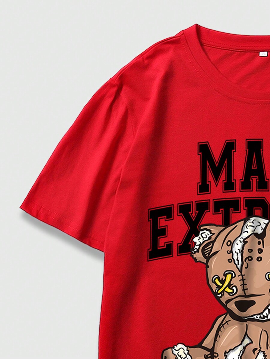 Street Life 2pcs Men's Casual Bear Printed Short Sleeve T-Shirt And Shorts Set, Suitable For Spring And Summer, School