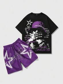 Street Life 2pcs Men's Casual Slogan Graphic T-Shirt And Shorts Set, Summer