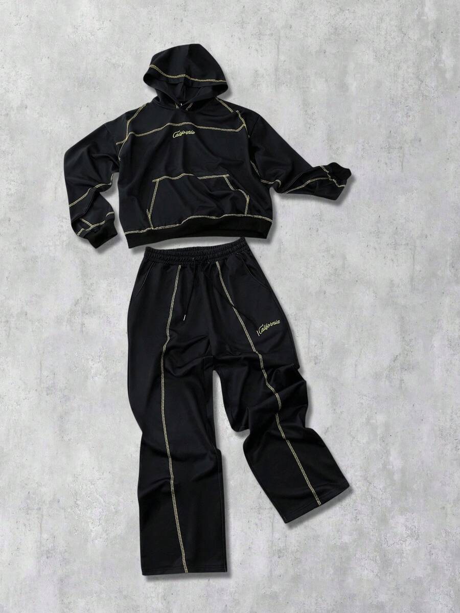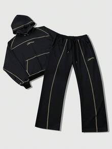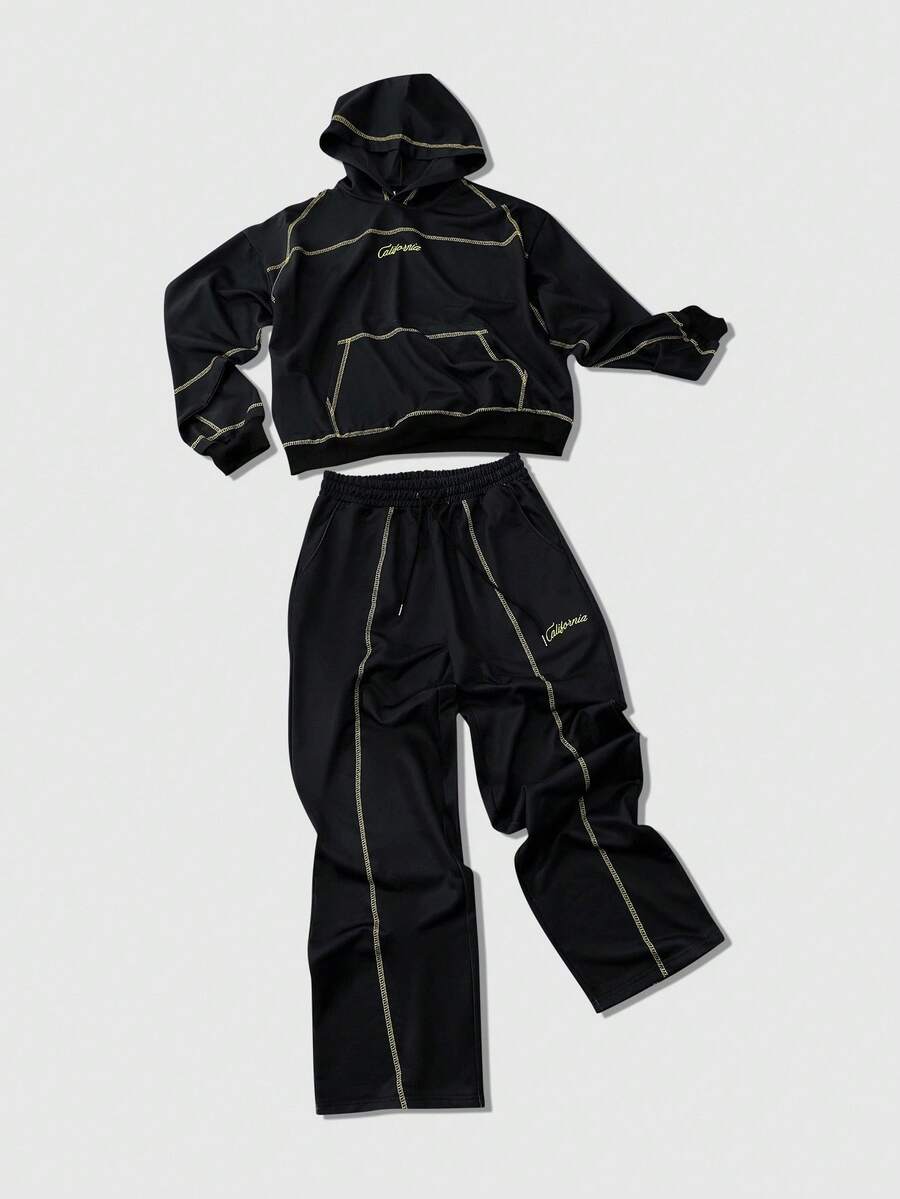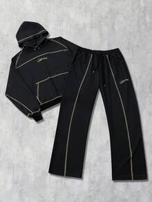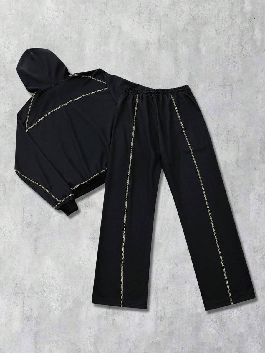 Street Life 2pcs Men's Hooded Sweatshirt Set With Sweatpants, Suitable For Casual Wear In Autumn/Winter