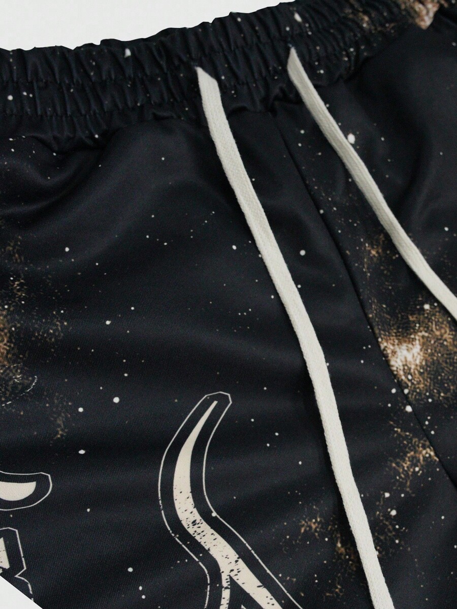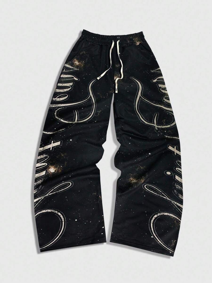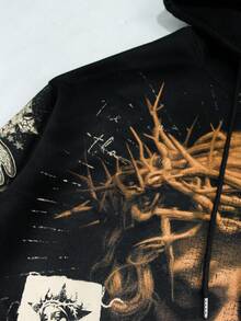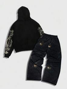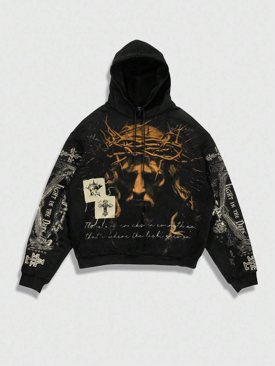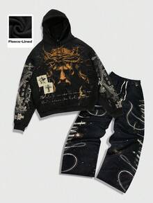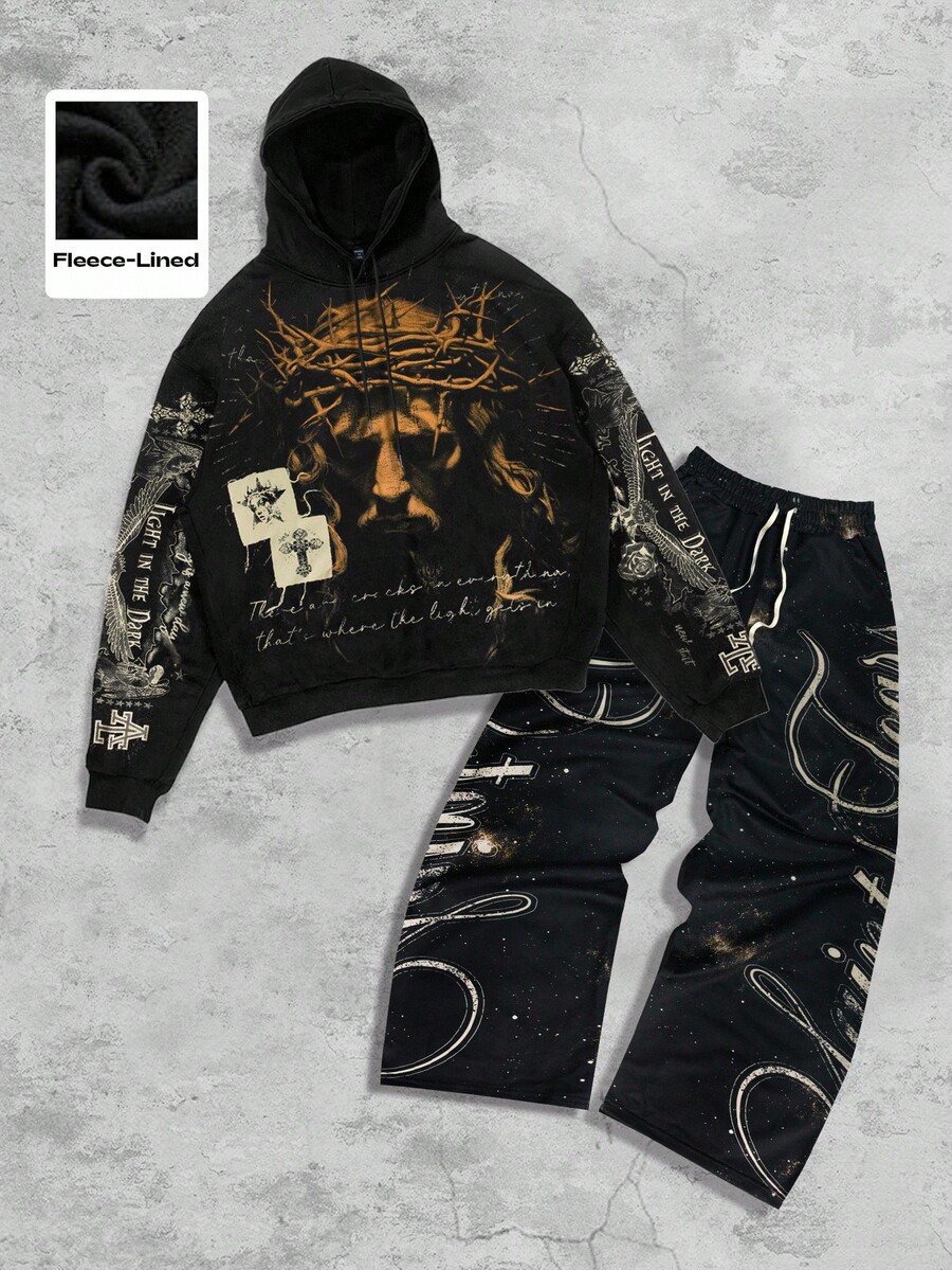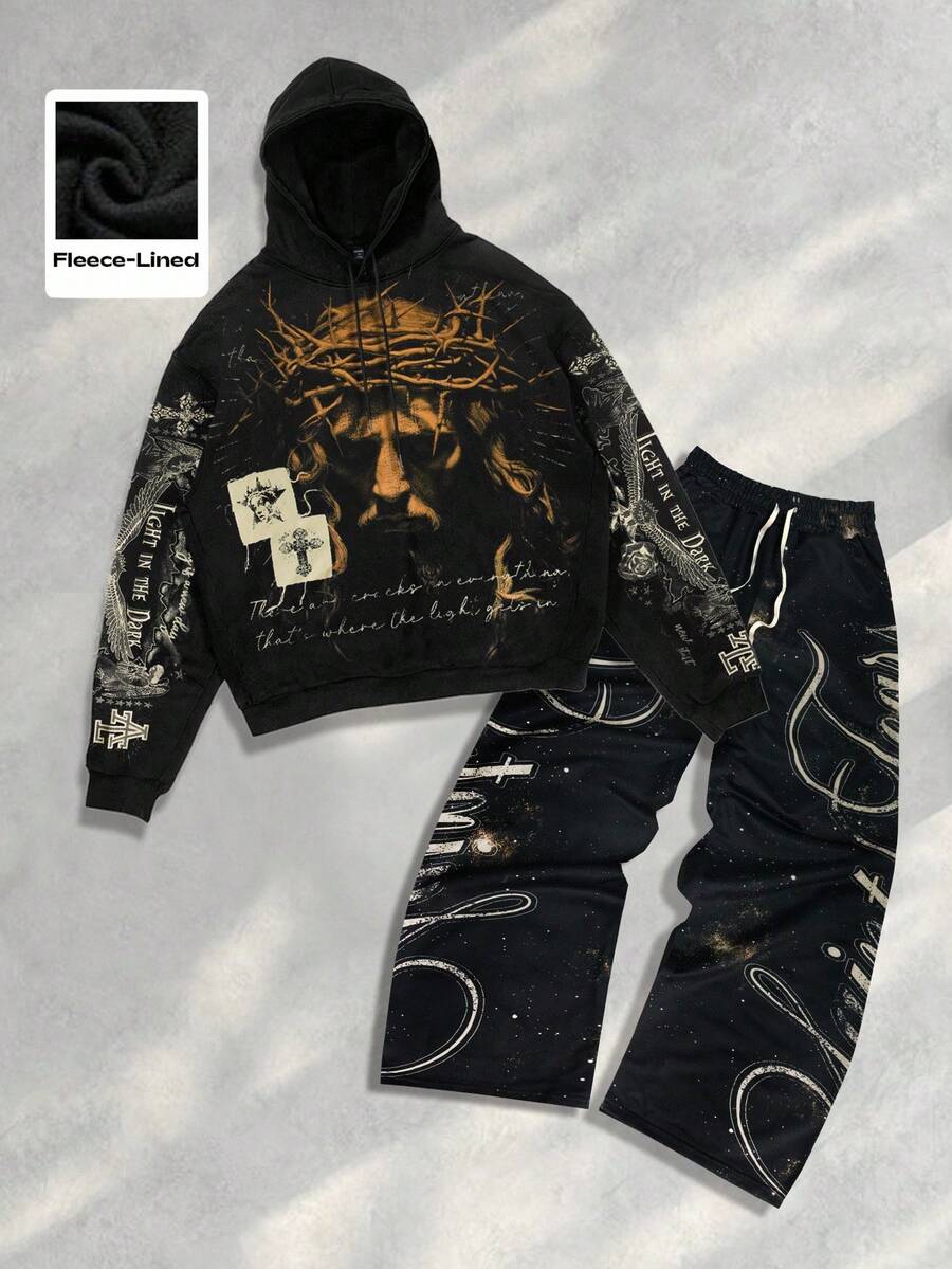 Street Life 2pcs Men's Jesus Hooded Sweatshirt And Pants Set, Autumn/Winter
