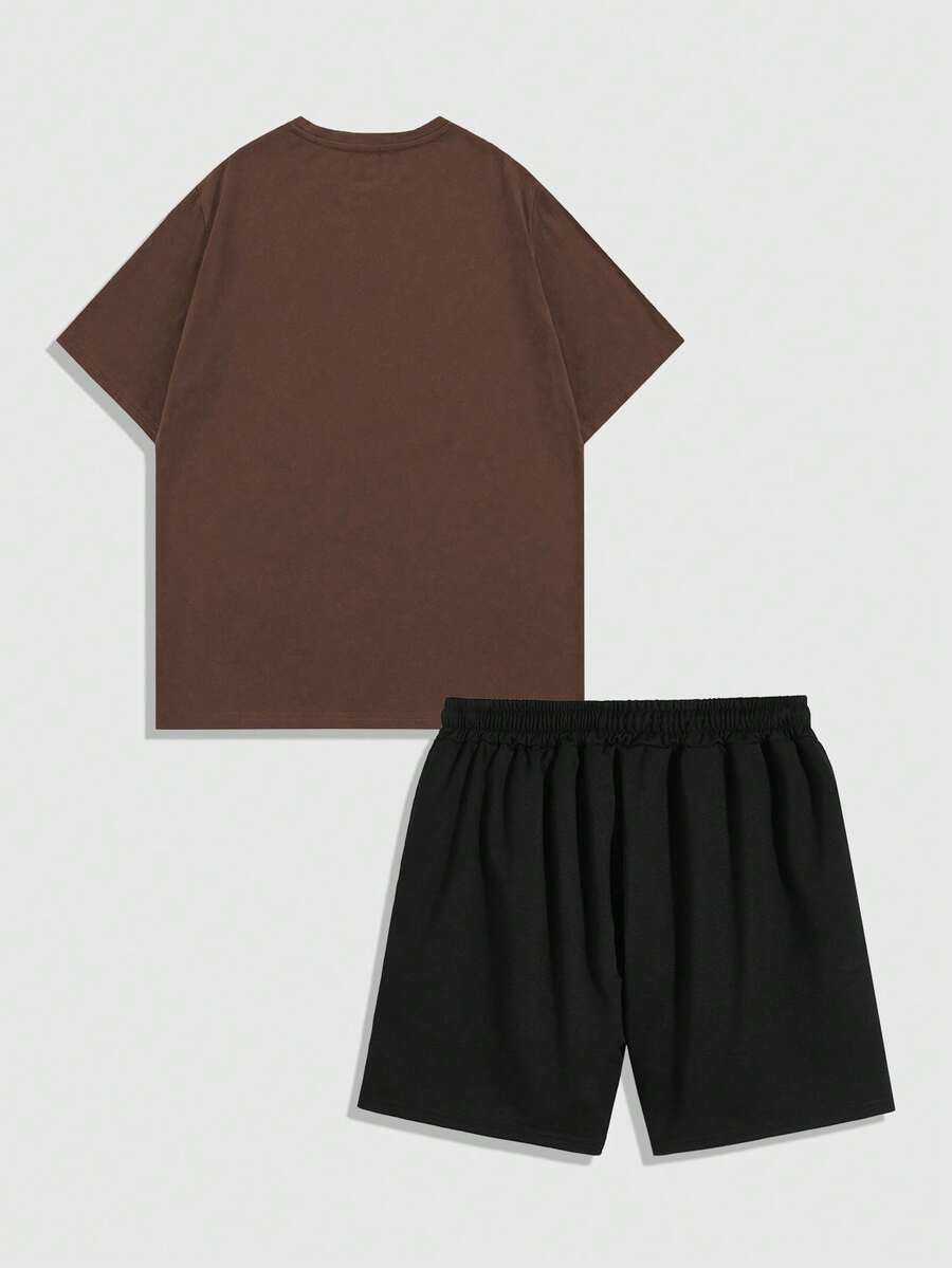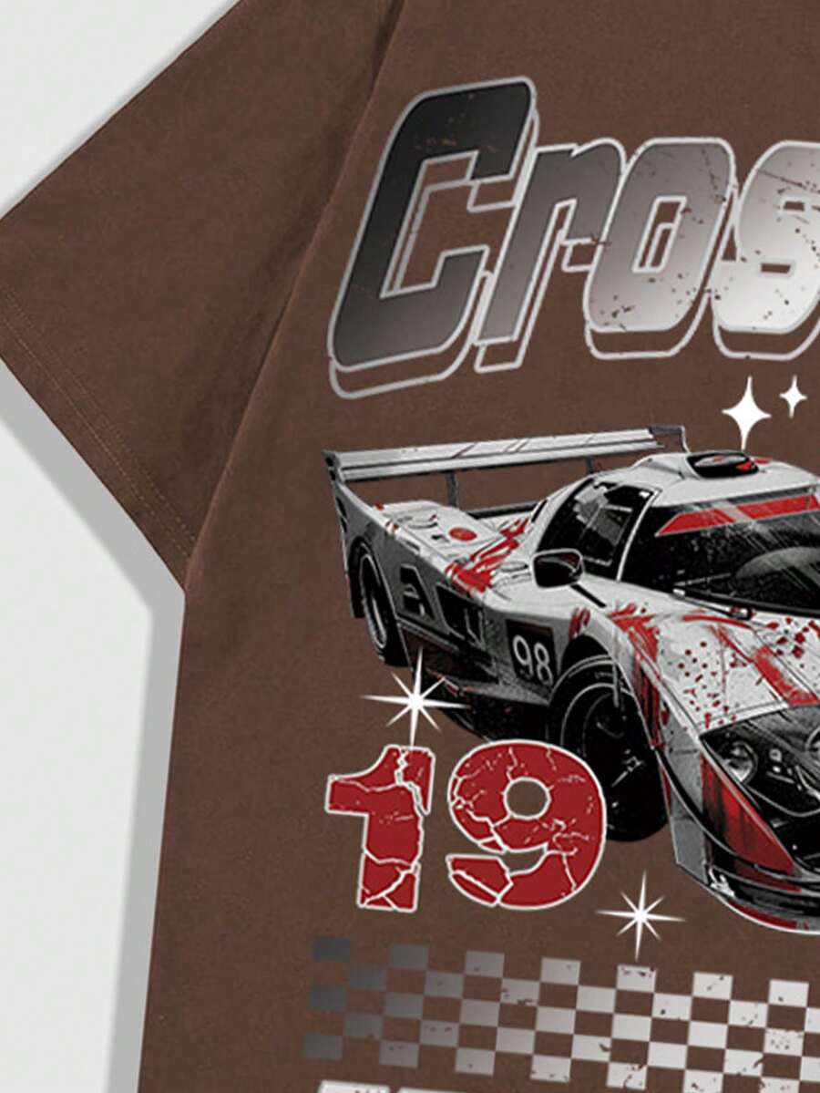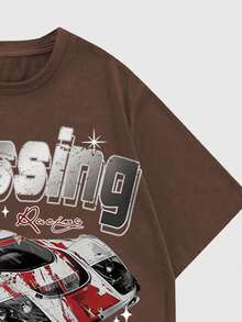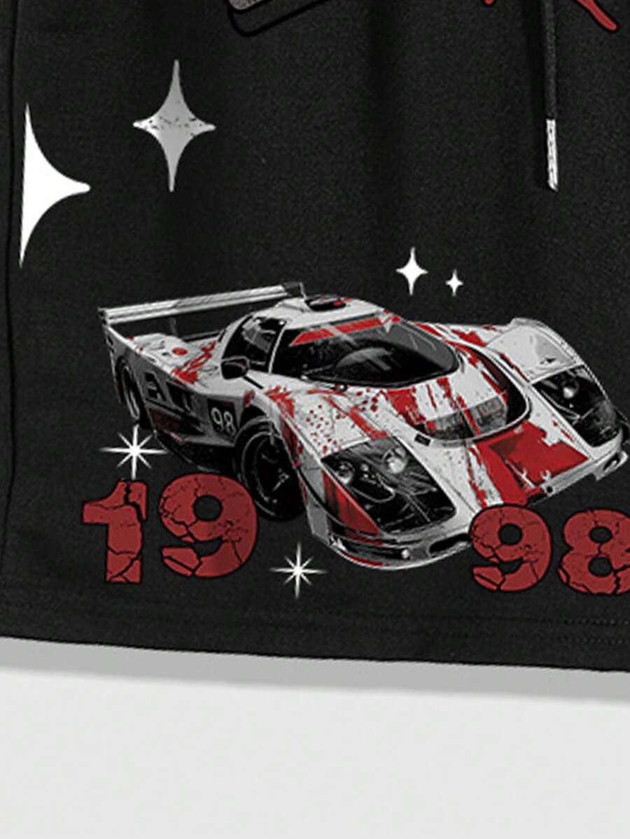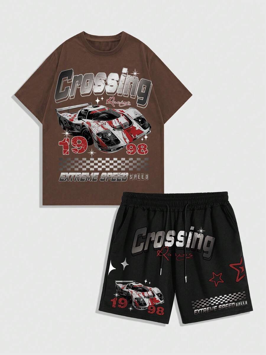 Street Life 2pcs Men's Street Racing Print Short Sleeve Outfit,Graphic Tee & Shorts