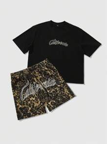 Street Life 2pcs/Set Men's Anime Print Short Sleeve T-Shirt And Shorts Outfit, Suitable For Daily Wear Spring/Summer