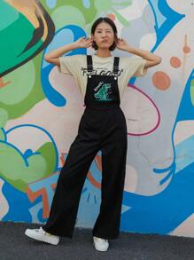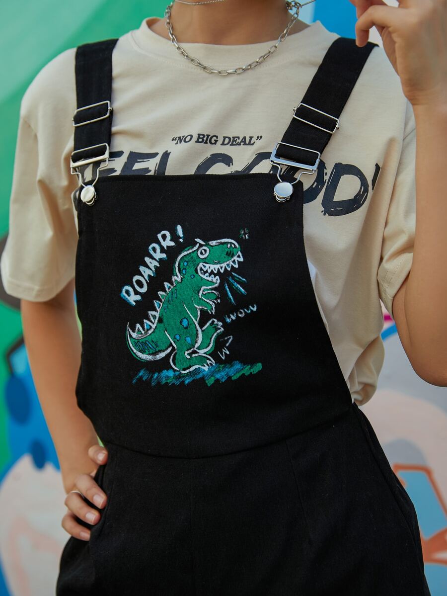 Street Life 80s Letter Cartoon Dinosaur Graphic Jumpsuit