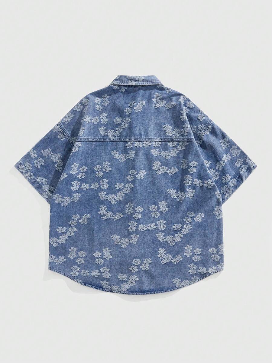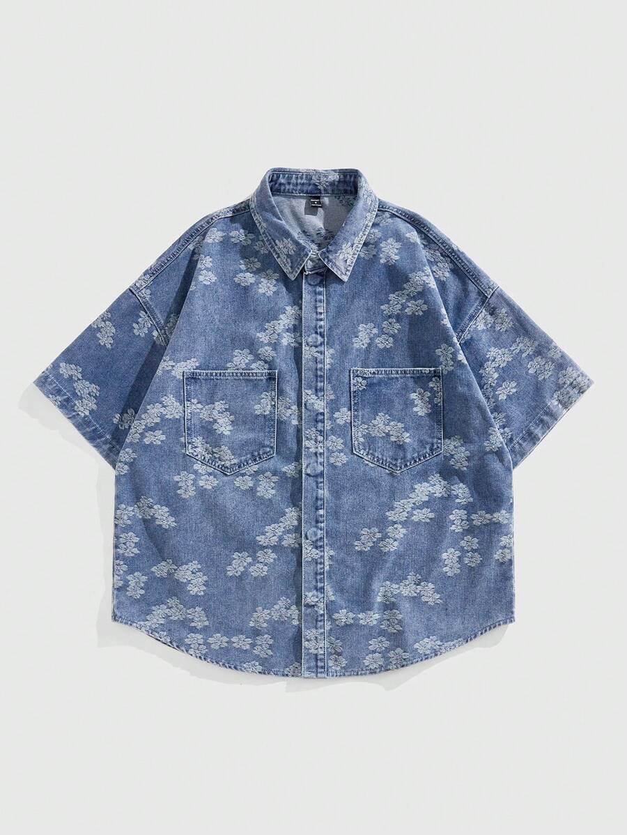 Street Life Casual Fashion Loose Daily Short Sleeve Denim Shirt For Men
