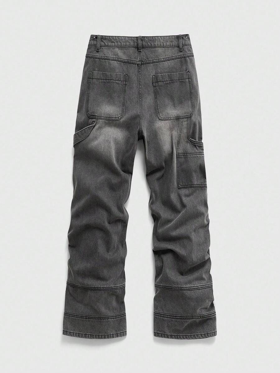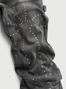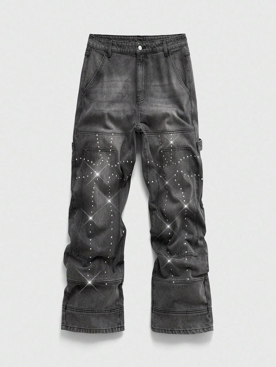 Street Life Casual Fashion Versatile Button Fly Wide Leg Rhinestone Men's Jeans