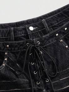 Street Life Casual Street Style Rivet Decor Wide Leg Double Waistband Men's Jeans