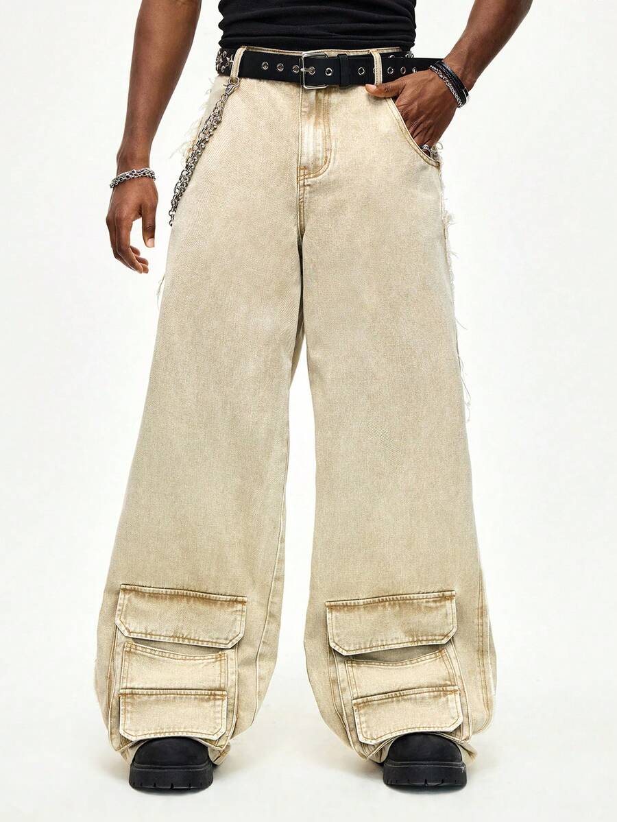 Street Life Distressed Straight Leg Loose Fit Camel Jeans With Belt Loops
