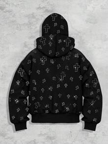 Street Life Fashionable Rhinestone Embellished Hooded Sweatshirt With Pockets, Zipper Front Hoodie For Men, For Winter
