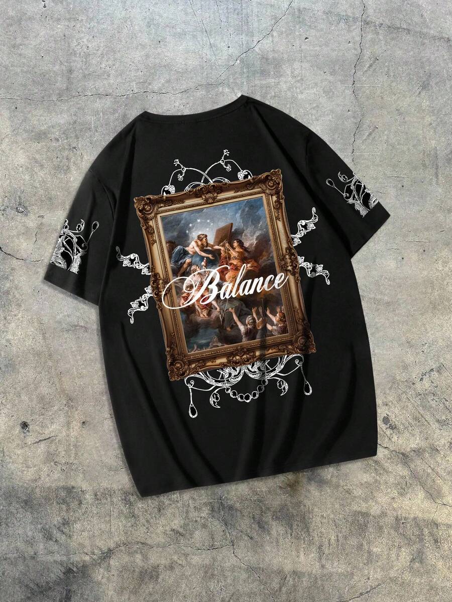 Street Life Goth Men's Summer Religious Black Retro Floral Oil Painting Frame Pattern Oversized Loose T-Shirt