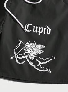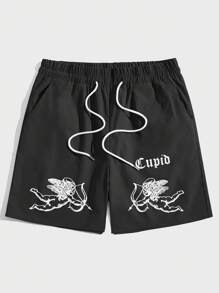 Street Life Guys Angel & Letter Graphic Drawstring Waist Shorts