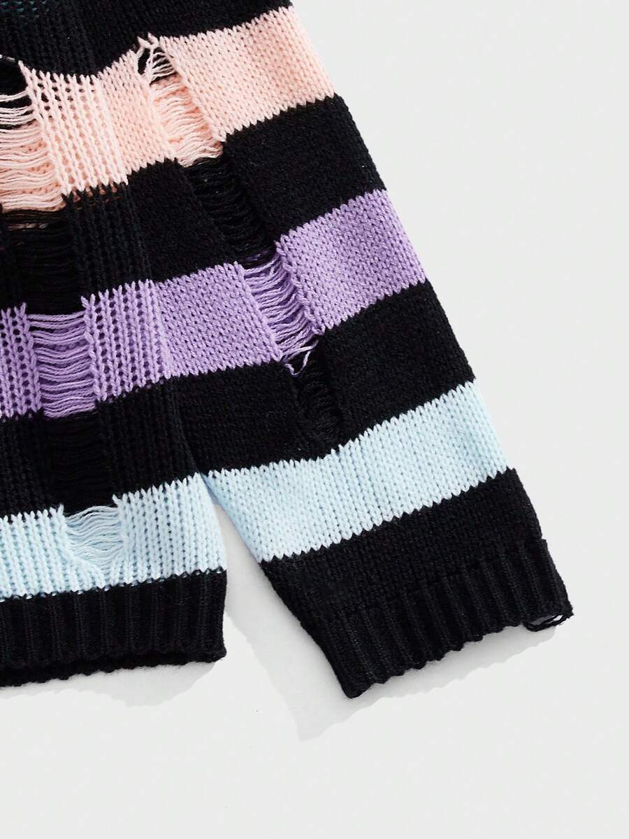 Street Life Guys Block Striped Pattern Ripped Sweater