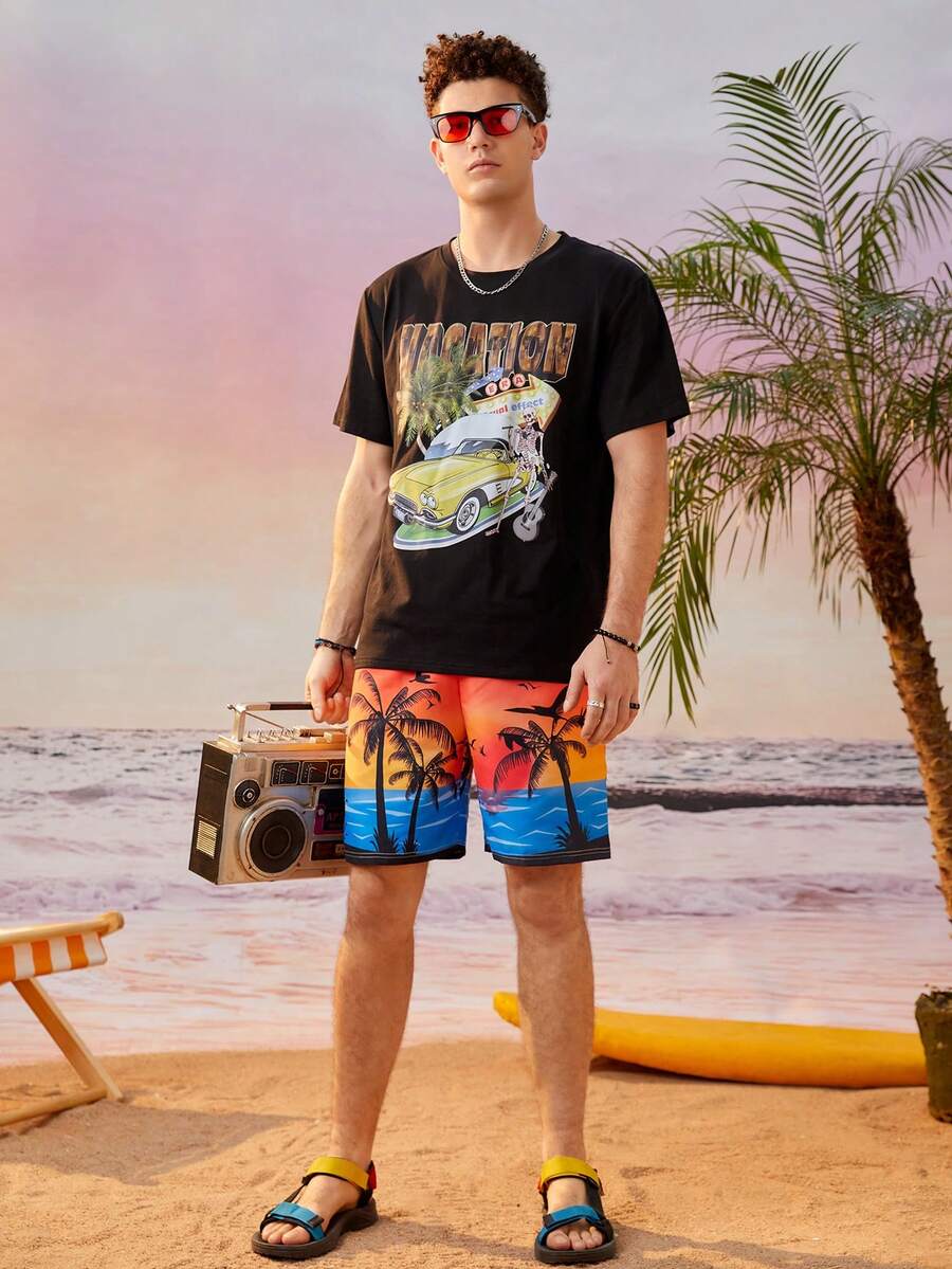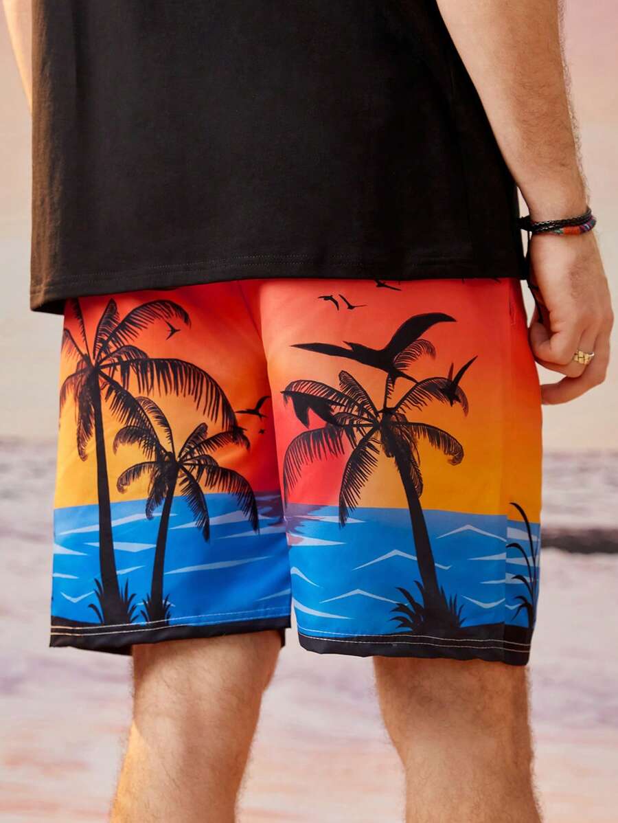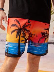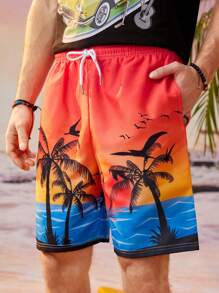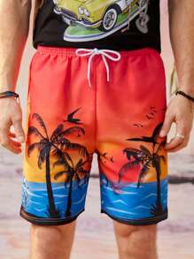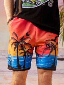 Street Life Guys Coconut Tree Print Drawstring Waist Shorts