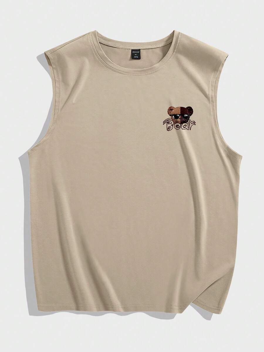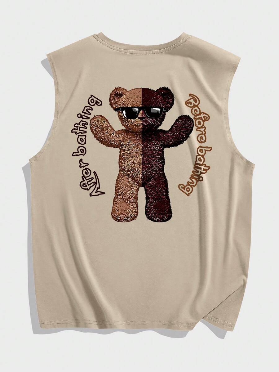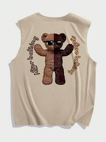 Street Life Guys Cotton Bear & Letter Graphic Tank Top