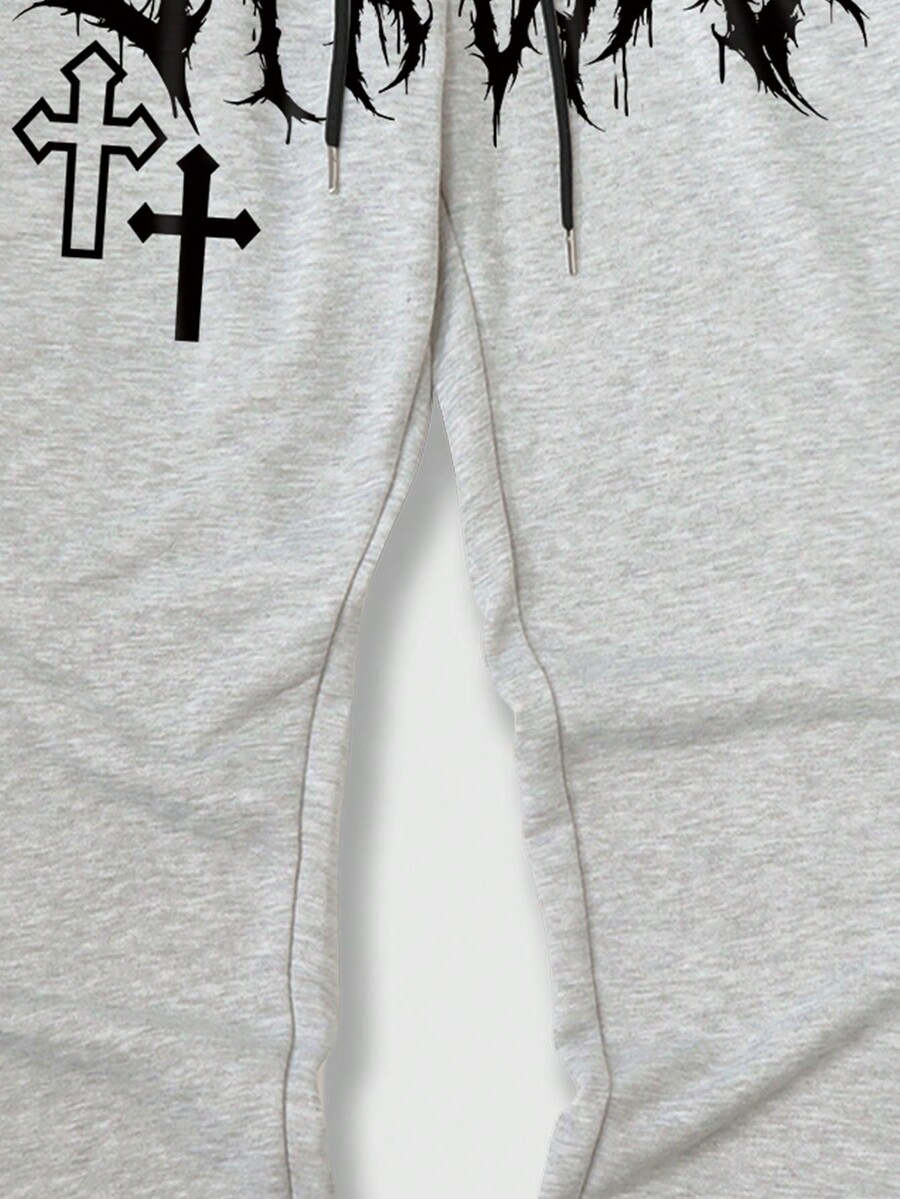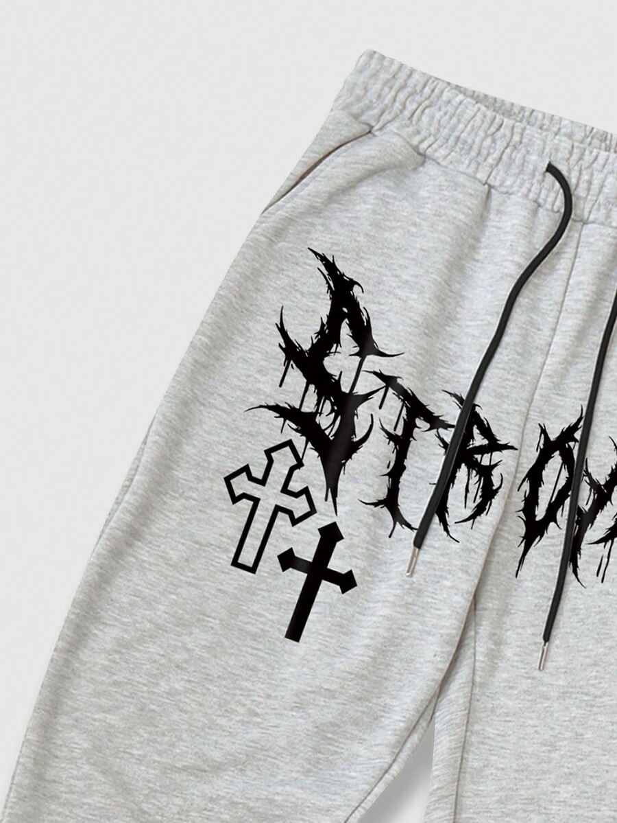 Street Life Guys Cross & Letter Graphic Drawstring Waist Sweatpants