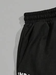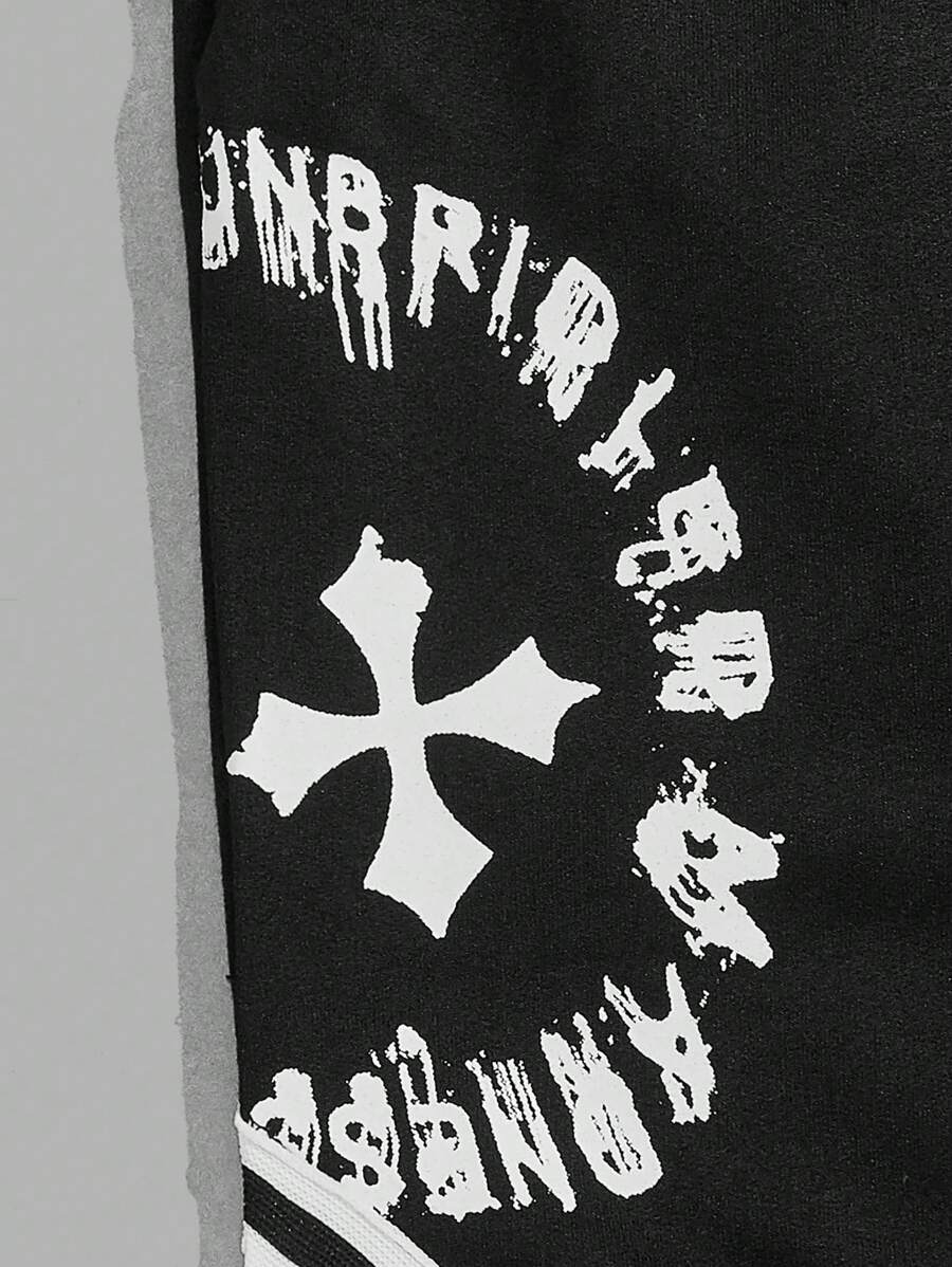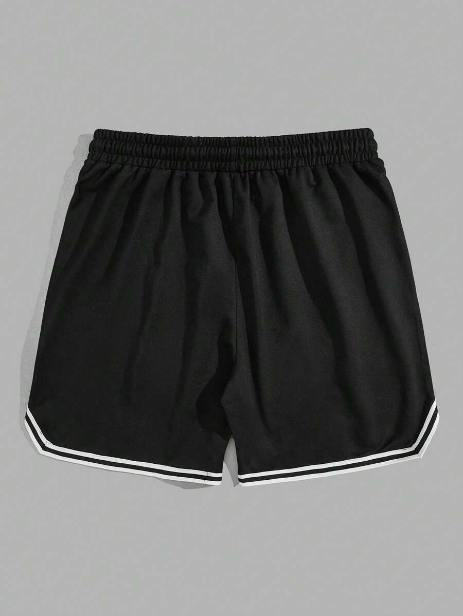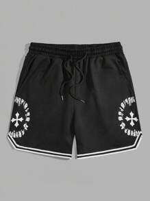 Street Life Guys Cross Letter Graphic Striped Trim Drawstring Waist Shorts