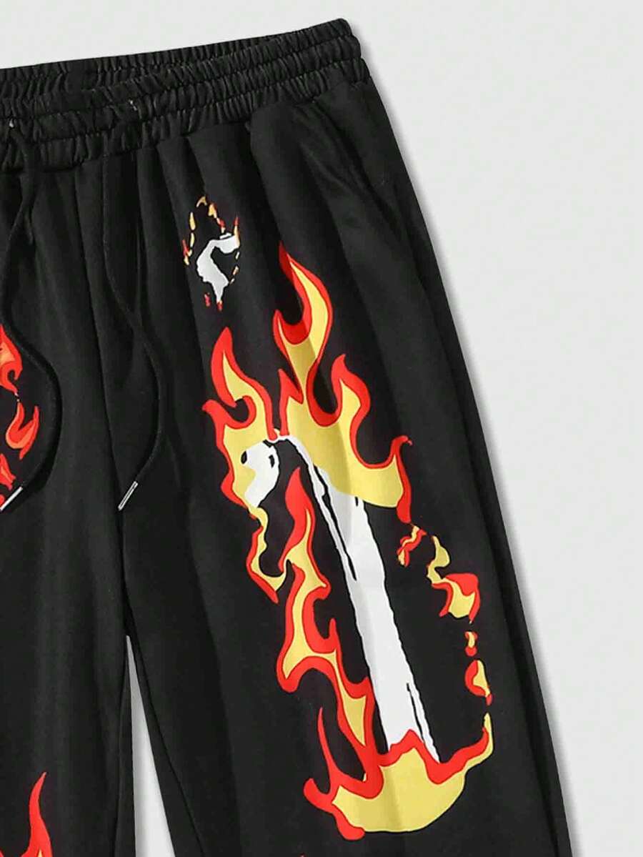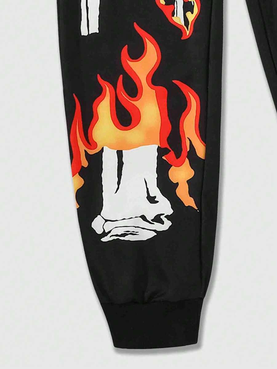 Street Life Guys Fire & Bones Print Drawstring Waist Sweatpants