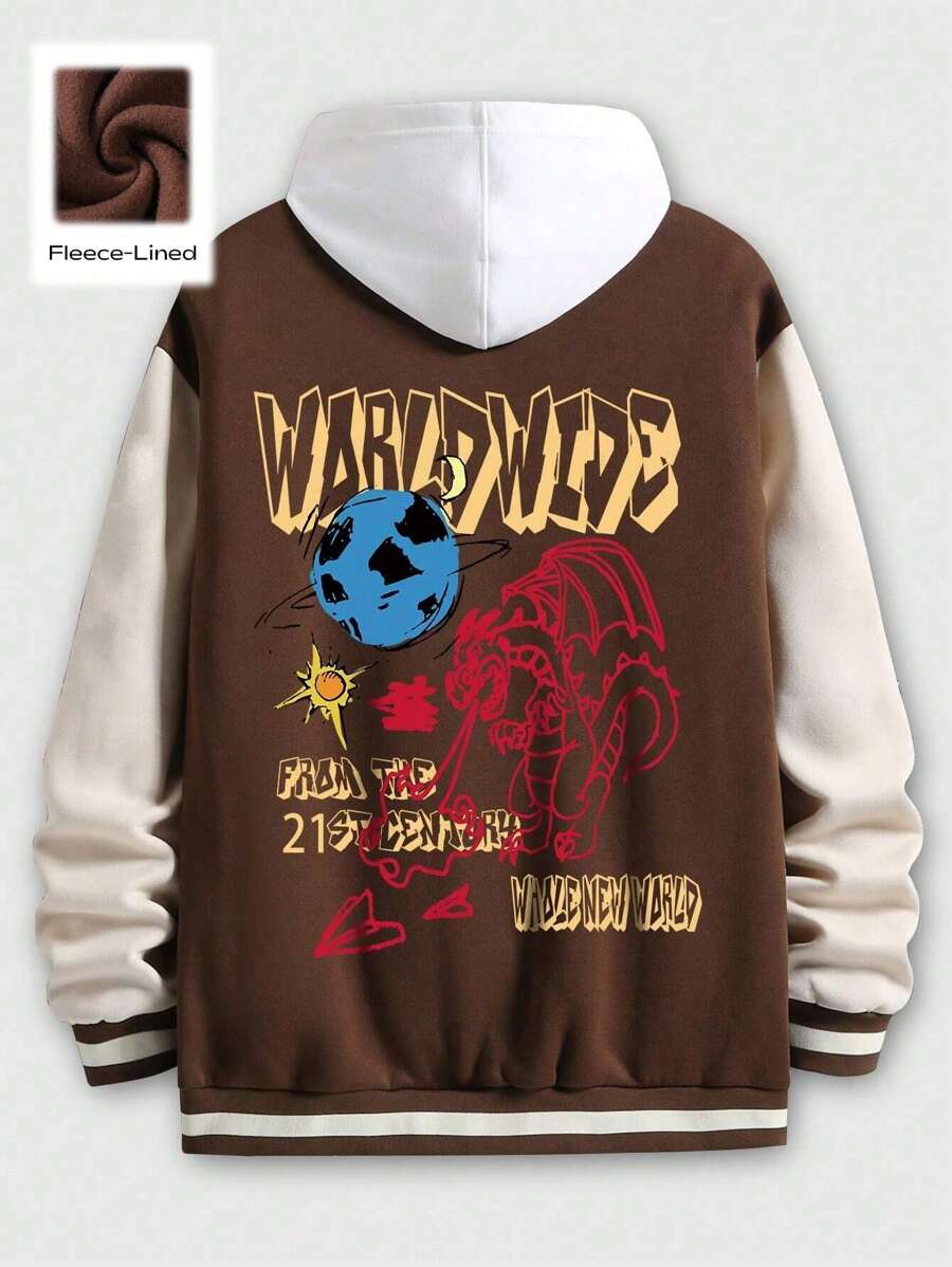 Street Life Guys Letter Graphic Two Tone Varsity Jacket Without Hoodie