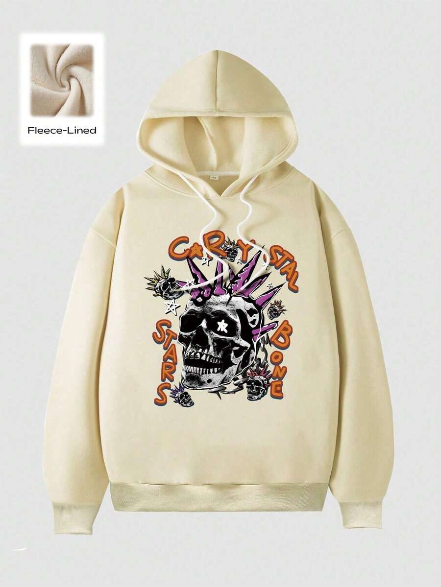 Street Life Guys Skull & Letter Graphic Drawstring Thermal Lined Hoodie