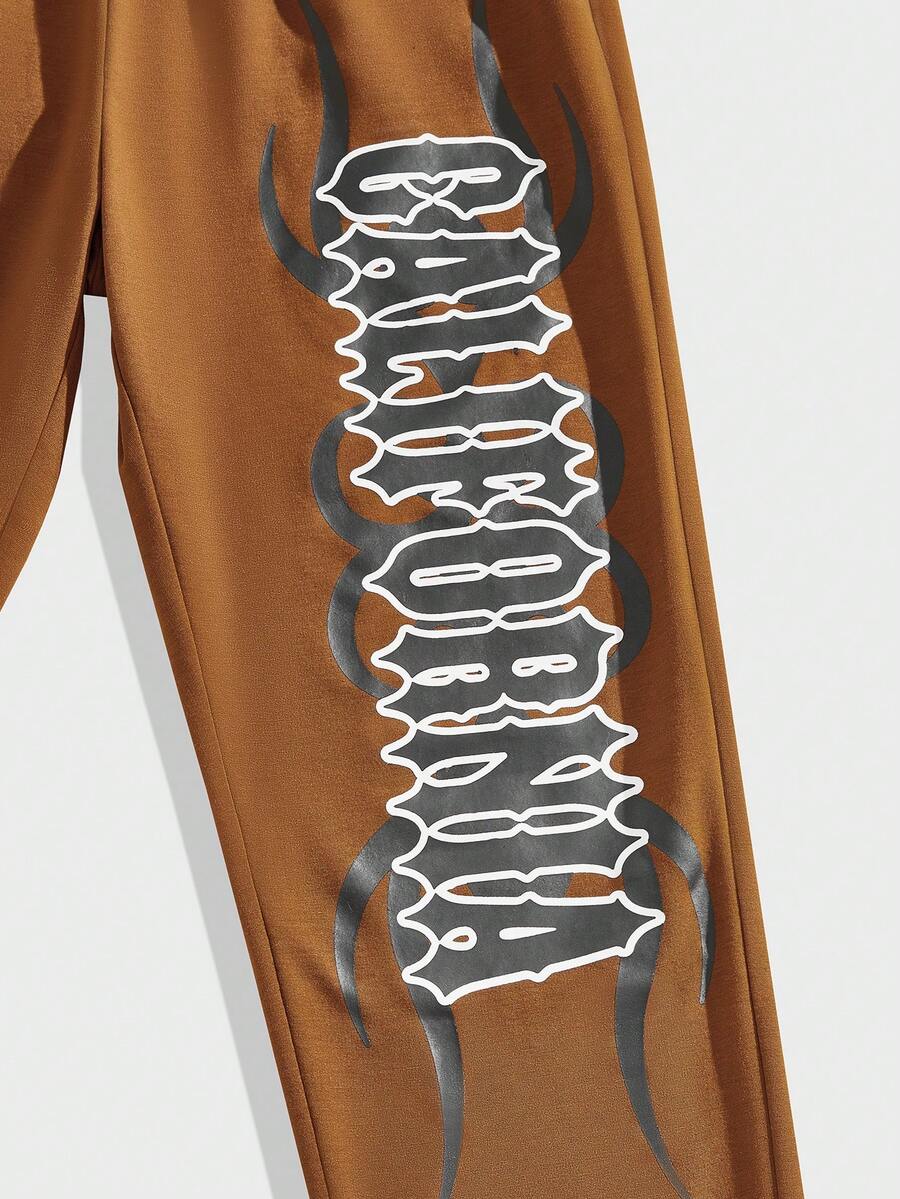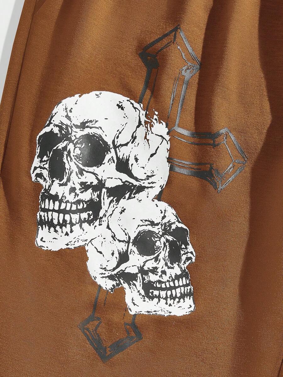 Street Life Guys Skull & Letter Graphic Drawstring Waist Sweatpants