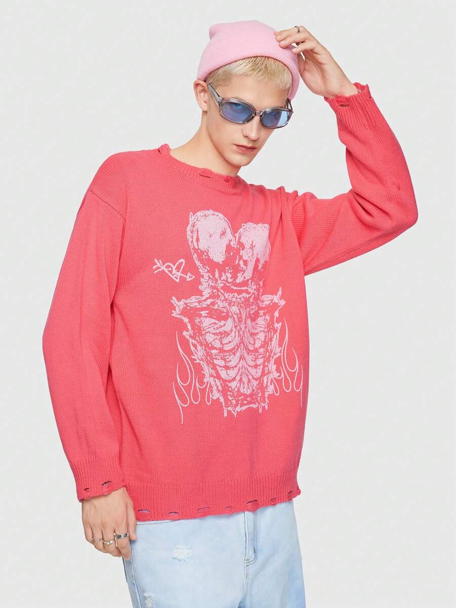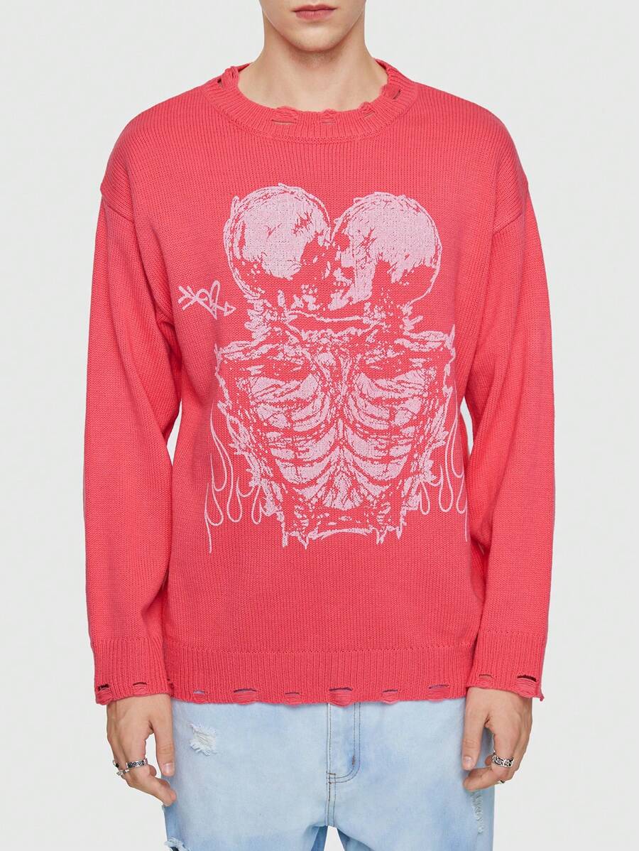 Street Life Guys Skull Pattern Drop Shoulder Sweater
