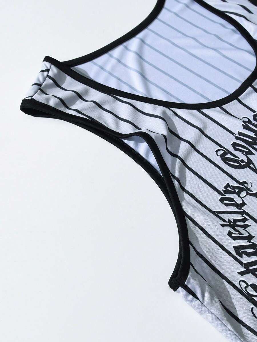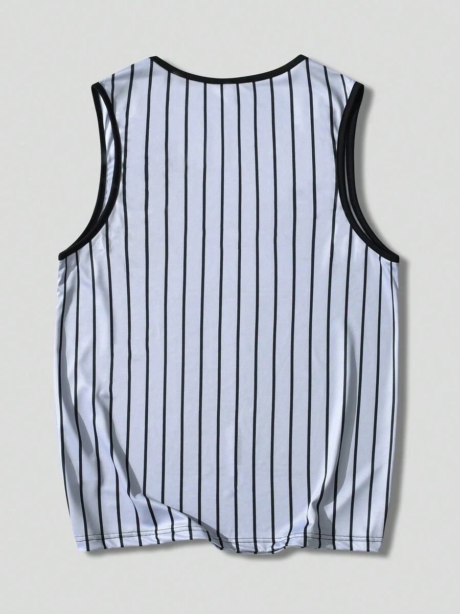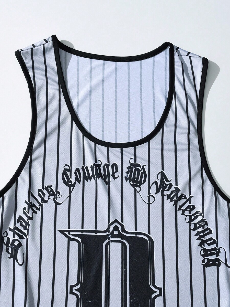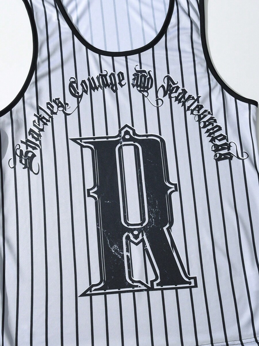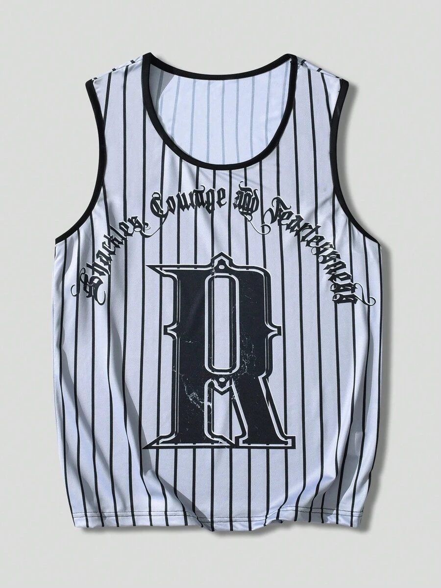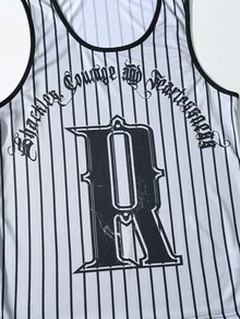 Street Life Guys Vertical Striped & Letter Graphic Tank Top