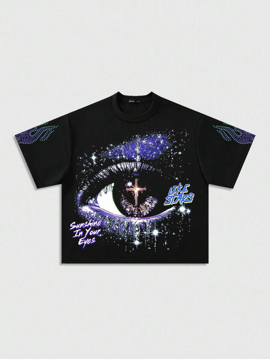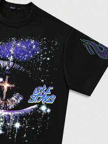 Street Life Loose Fit Short Graphic Print T-Shirt For Men, 2000s Style