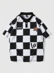 Street Life Men Black And White Checkered Short Sleeve Polo Shirt Sports Polo For Summer, School