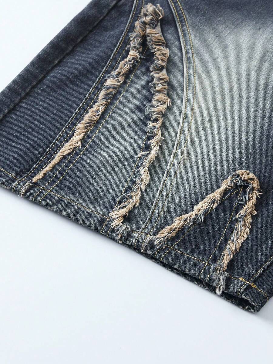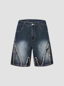 Street Life Men Bleach Wash Raw Trim Denim Shorts For Summer