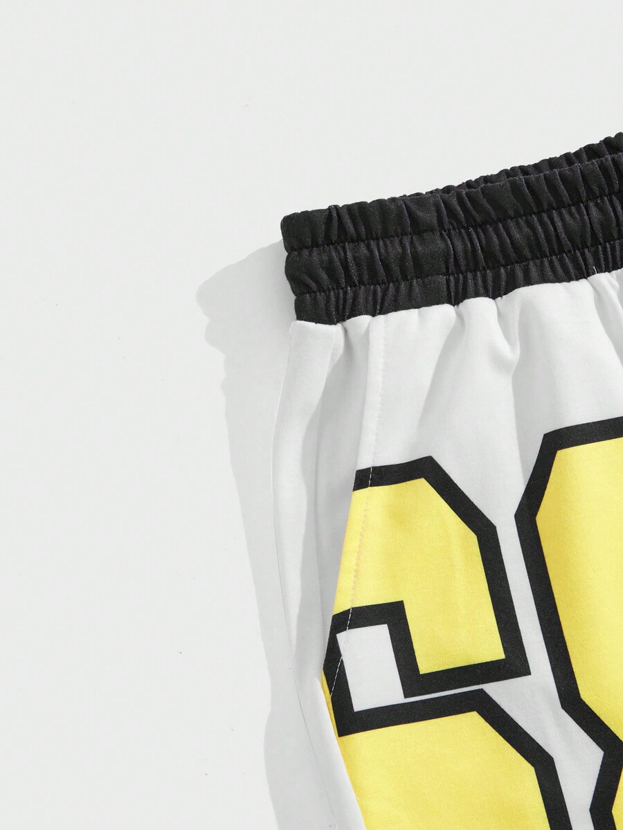 Street Life Men Drawstring Waist Jogger Pants With Letter & Basketball Print Patchwork