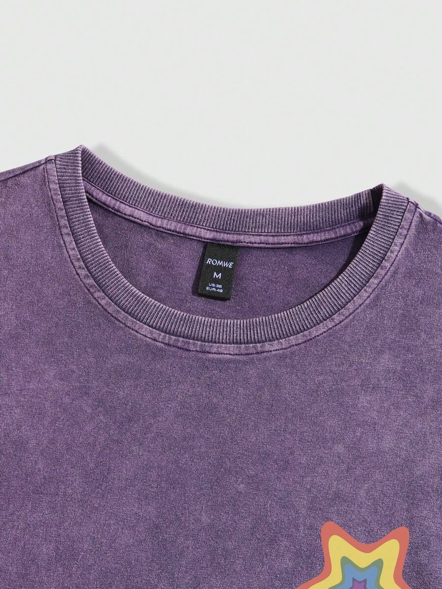 Street Life Men Fashionable Loose Casual Y2k T-Shirt With Star & Letter Print
