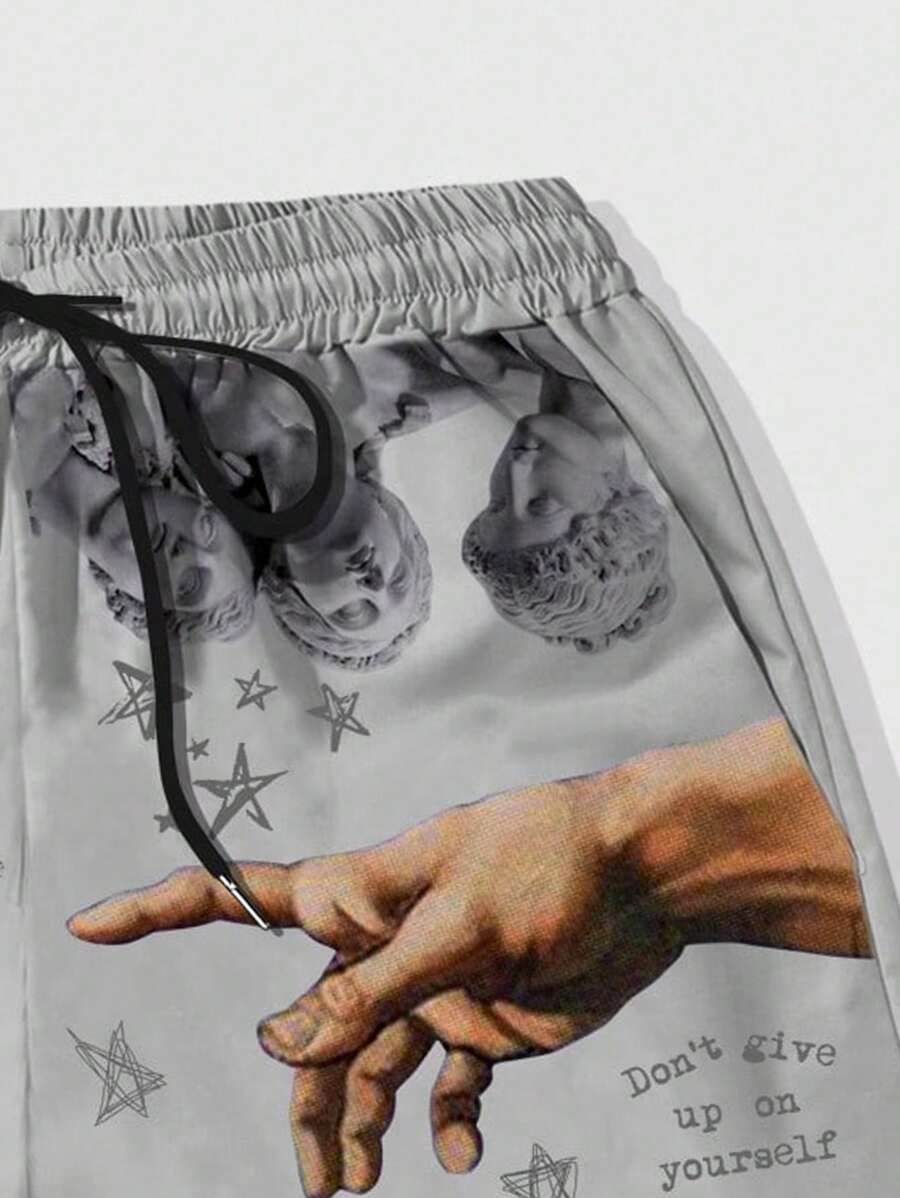 Street Life Men Figure Graphic Weaving Casual Shorts Suitable For Daily Wear In Spring And Summer, School