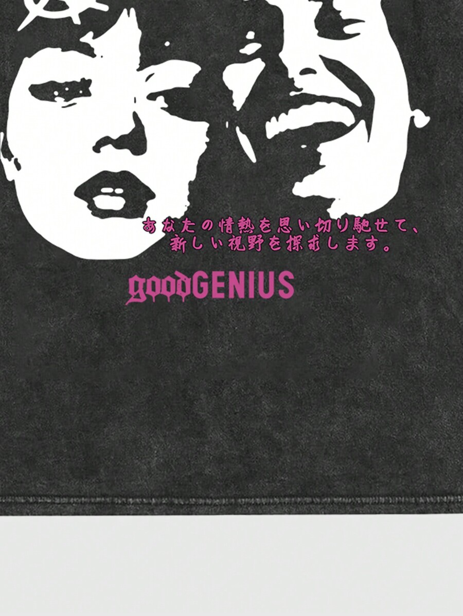 Street Life Men High Street Vintage Washed T-Shirt With Blurred Portrait Print