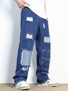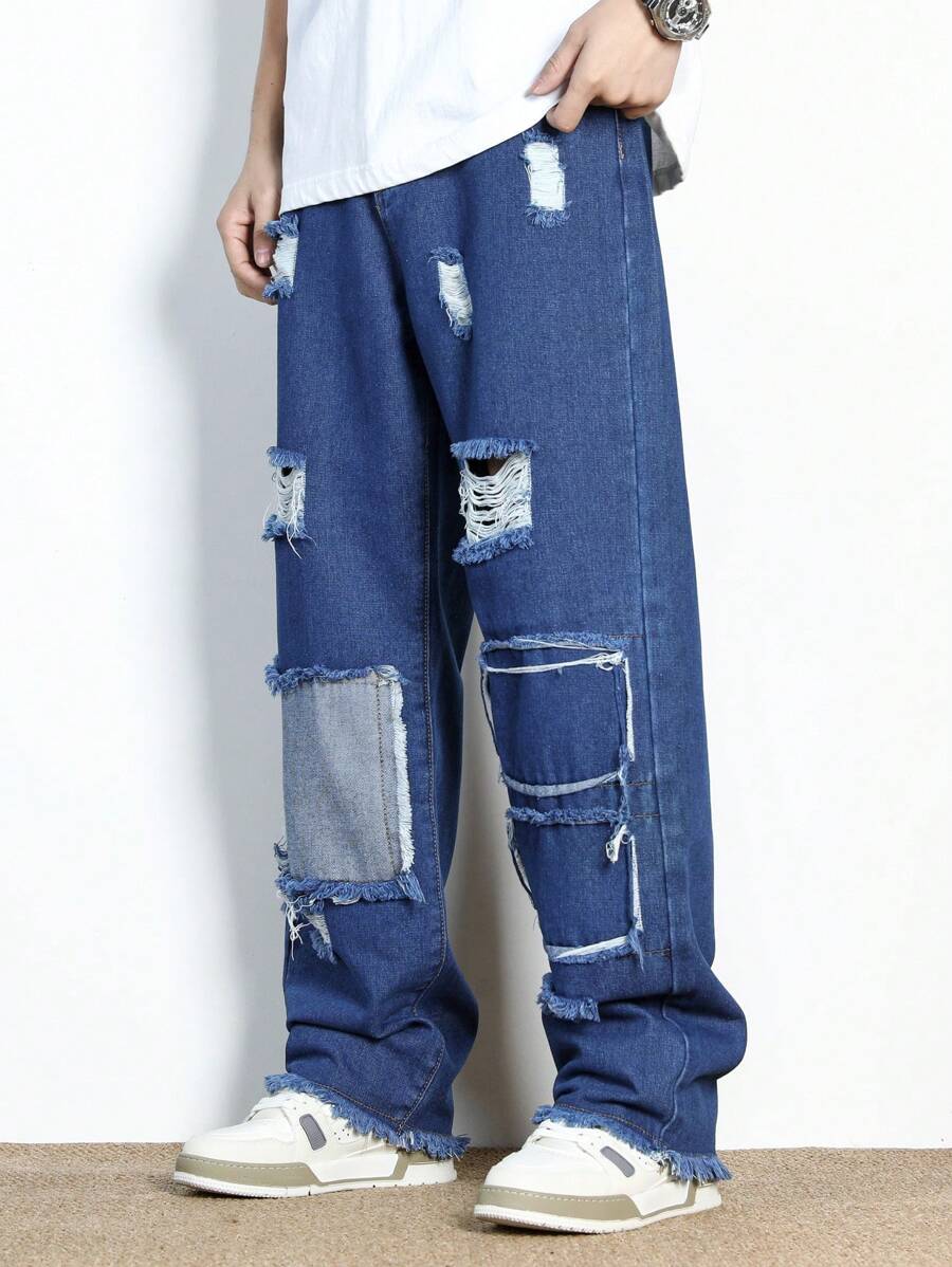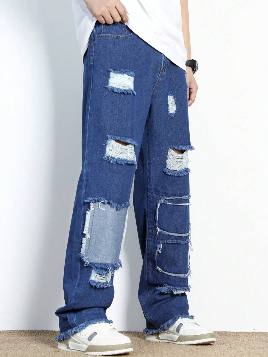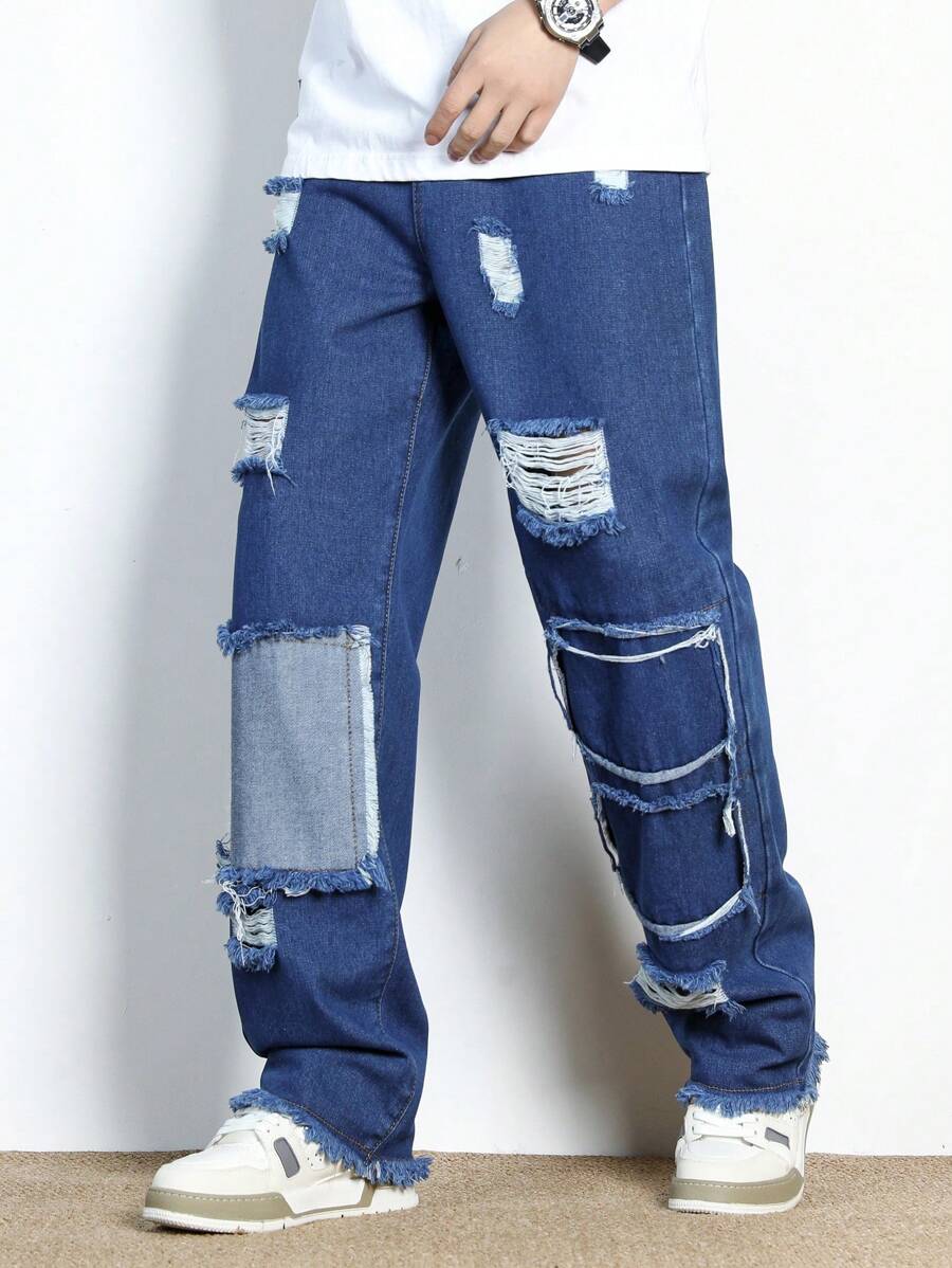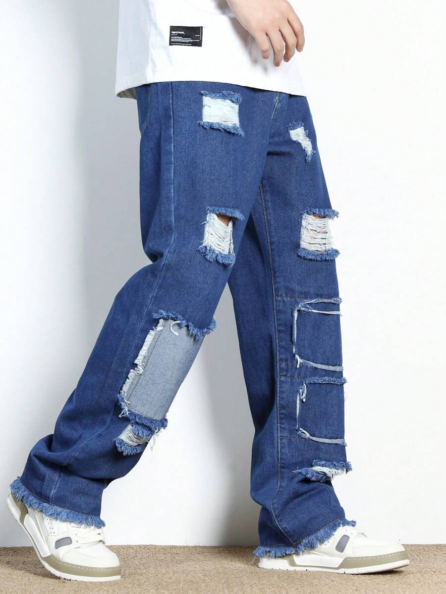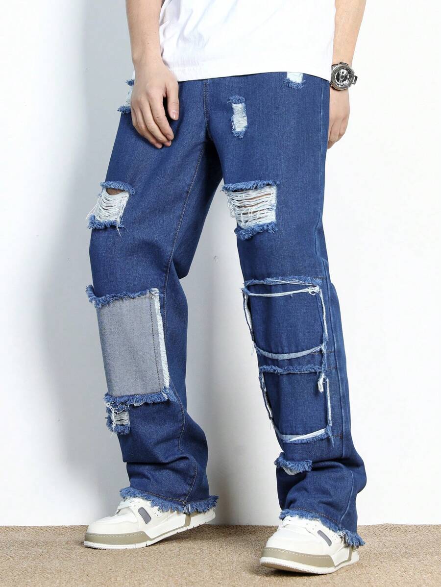 Street Life Men'S Hole Ripped Spliced Denim Jeans