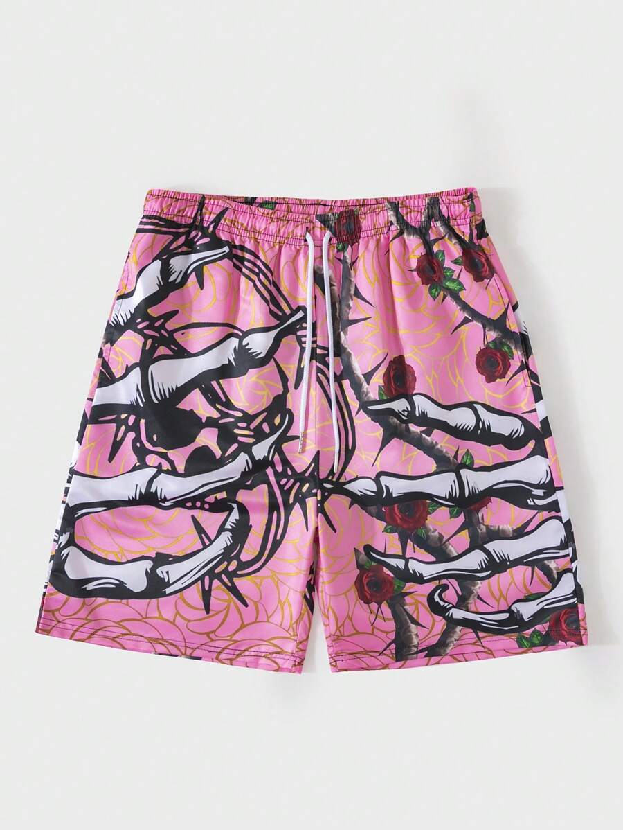 Street Life Men'S Skull Hand Rose Printed Shorts