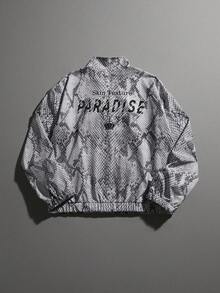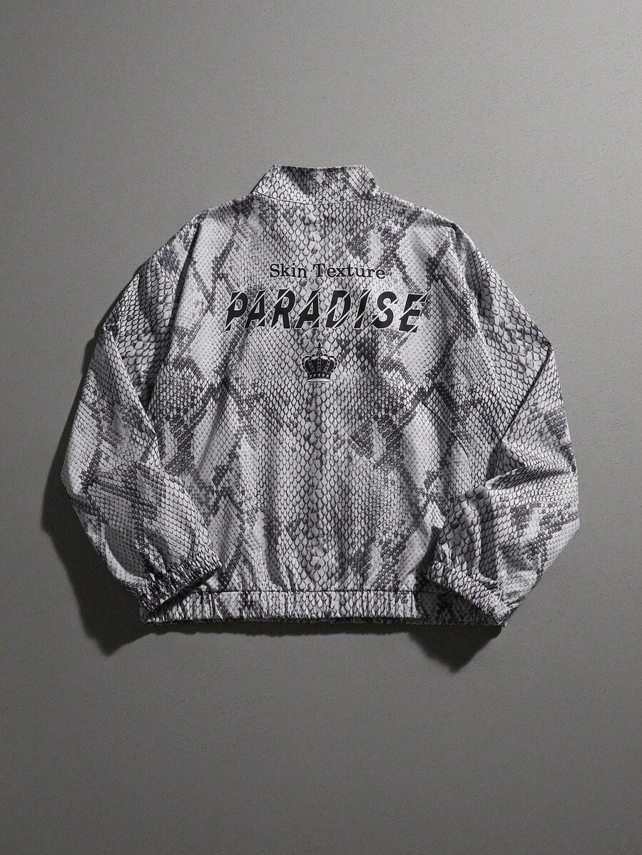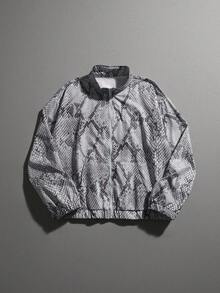 Street Life Men Snake Skin Texture Casual Zipper Front Jacket, Fall