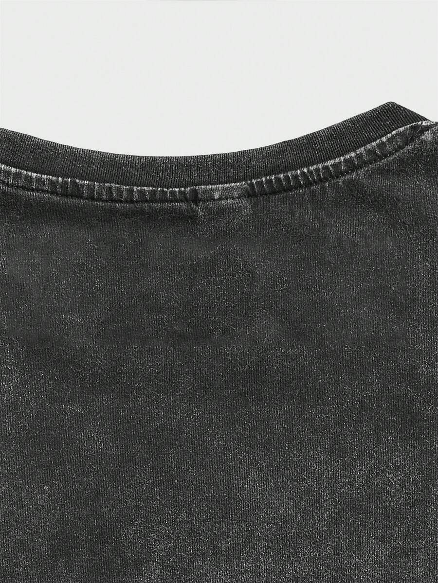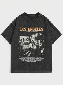 Street Life Men Snow Wash Vintage Slogan Graphic Tee, School, 2000s Style