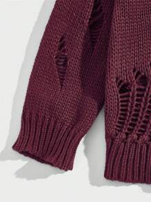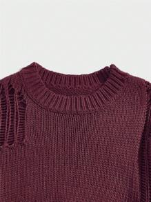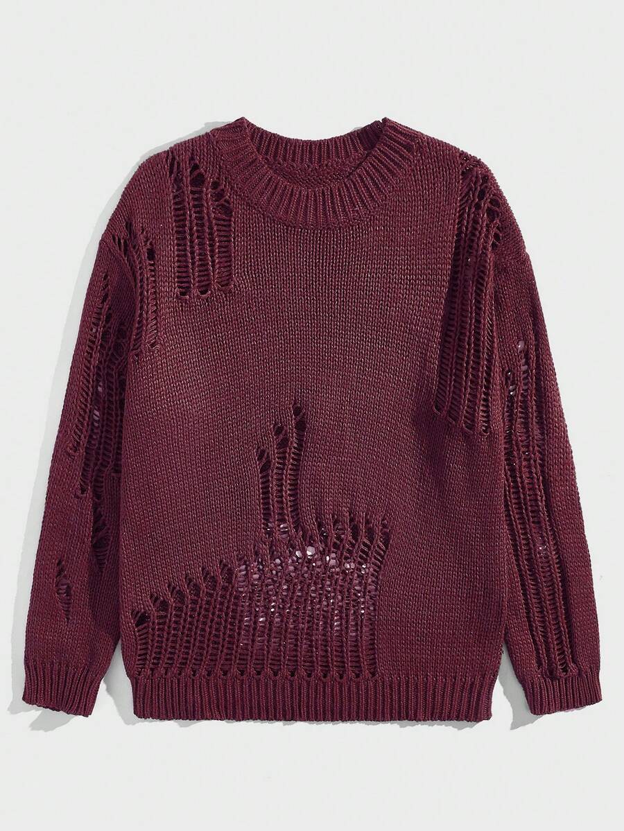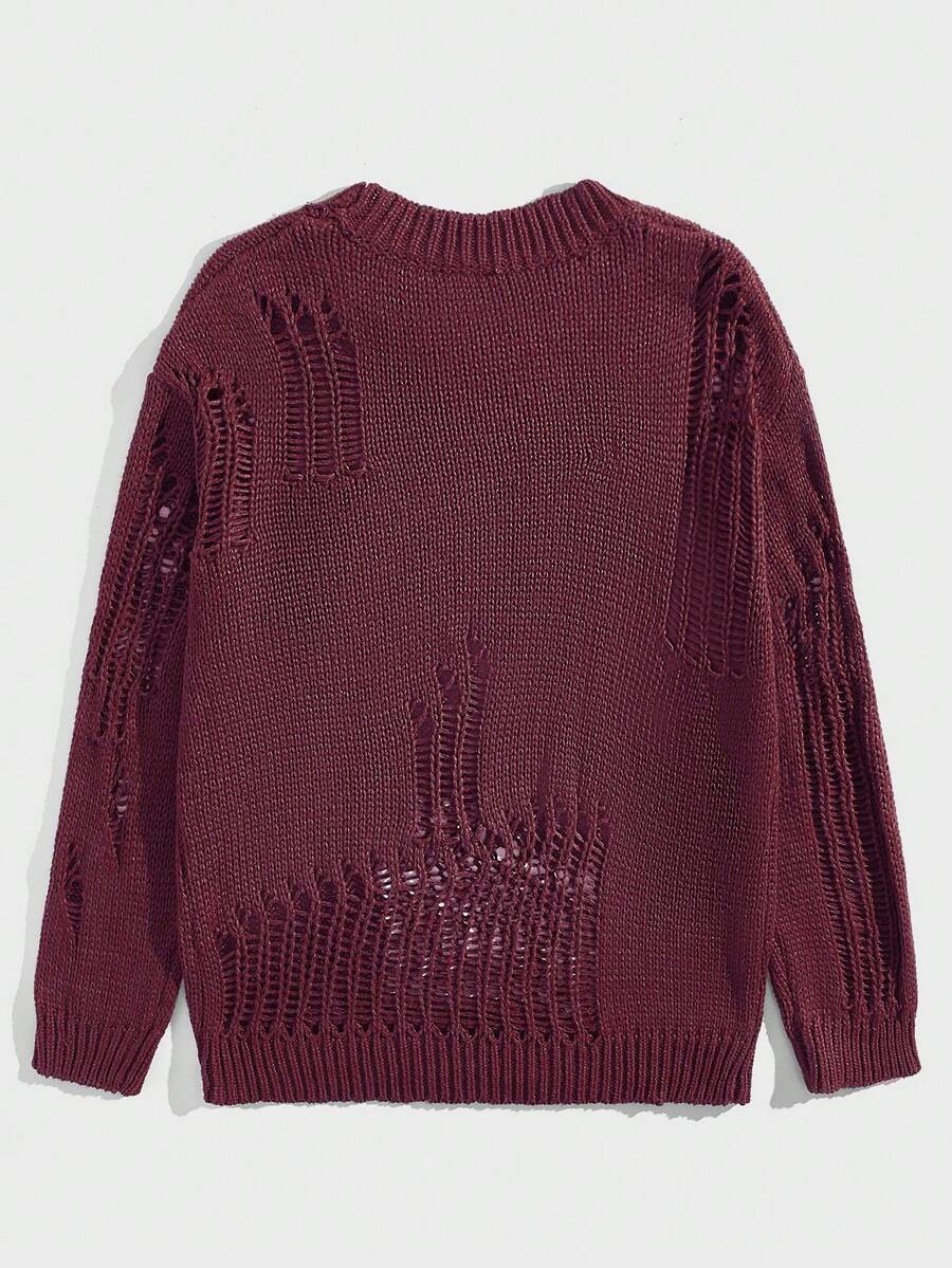 Street Life Men Solid Color Distressed Sweater