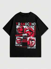 Street Life Men Summer Lip & Letter Printed Round Neck Casual Short Sleeve T-Shirt