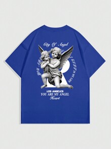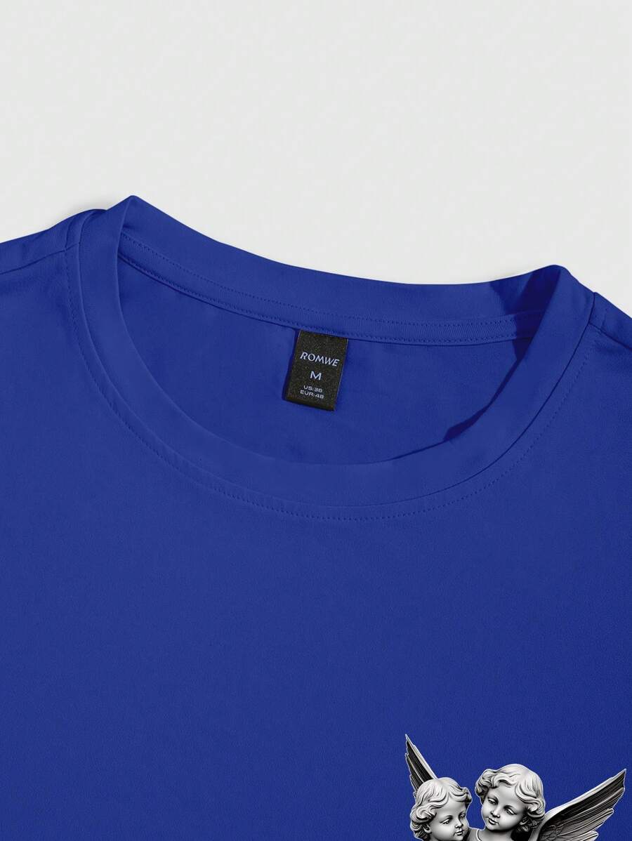 Street Life Men Summer Short Sleeve T-Shirt With Printed Angel Gypsum Statue