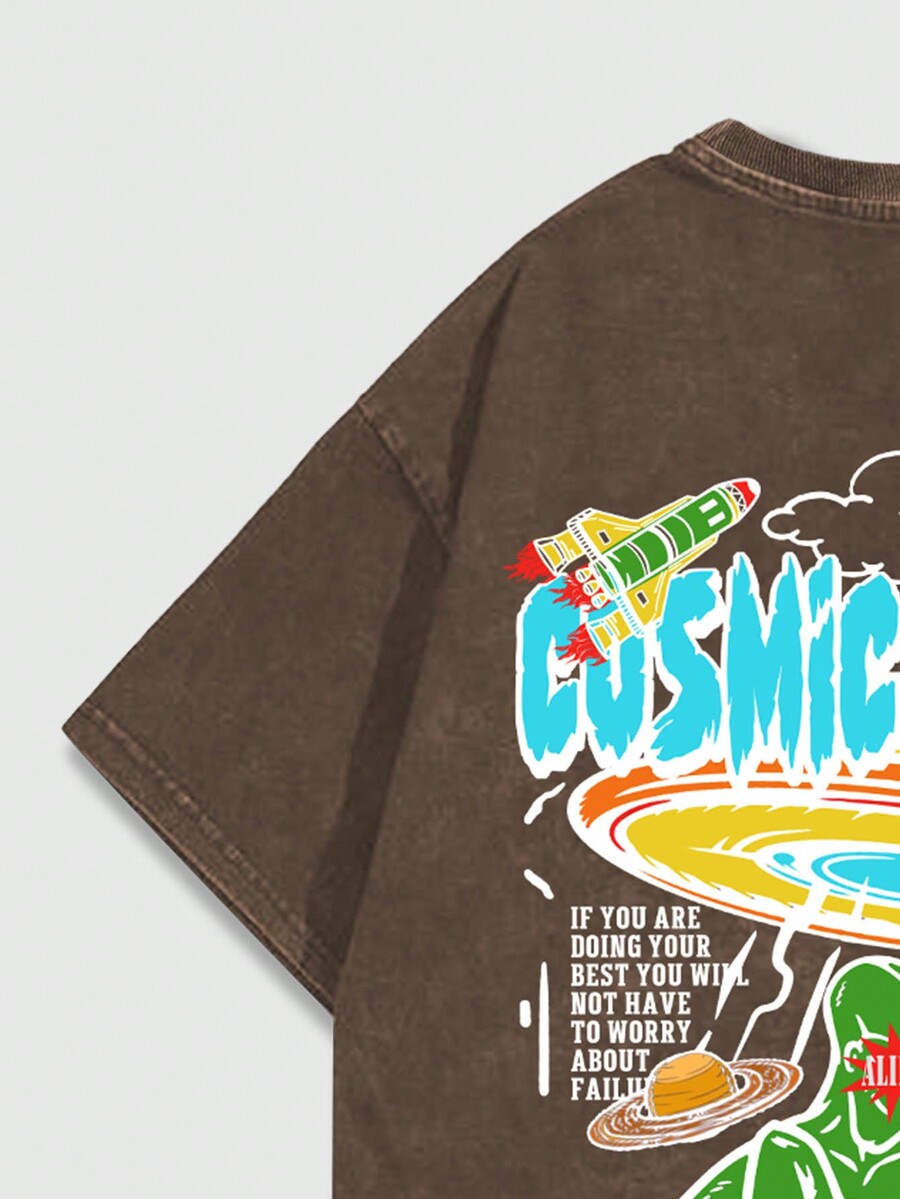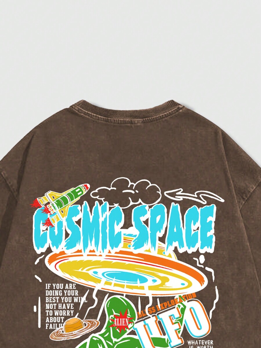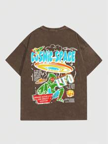 Street Life Men's Alien Slogan Print Short Sleeve T-Shirt, Suitable For Daily Wear In Spring And Summer