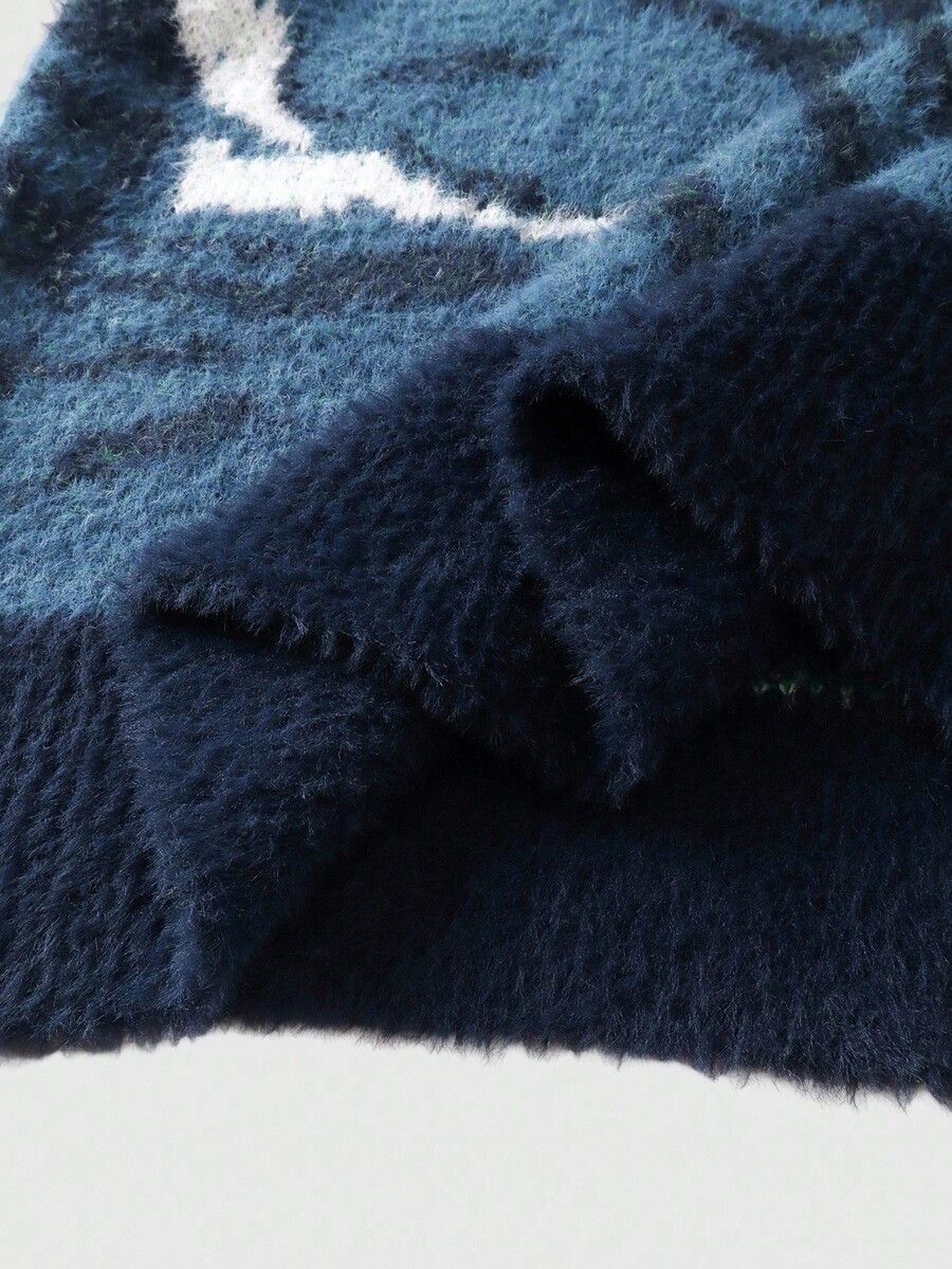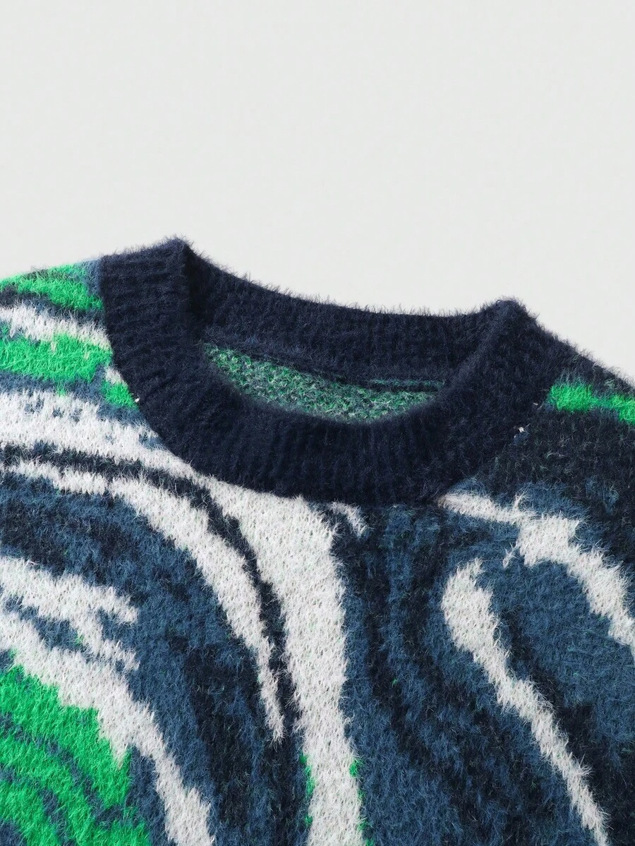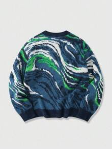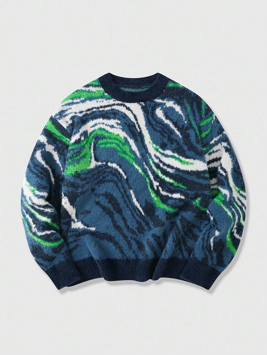 Street Life Men's All-Over Pattern Crew Neck Casual Versatile Long Sleeve Pullover Sweater