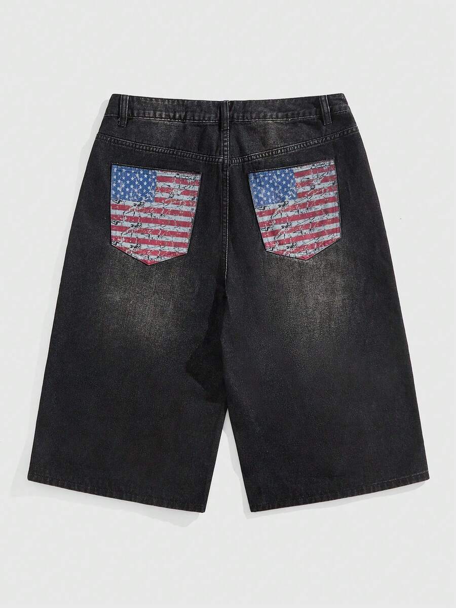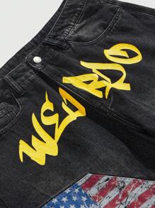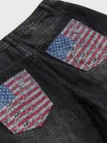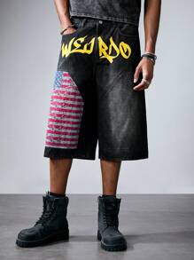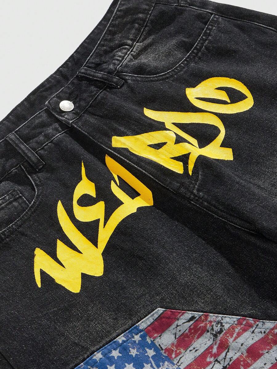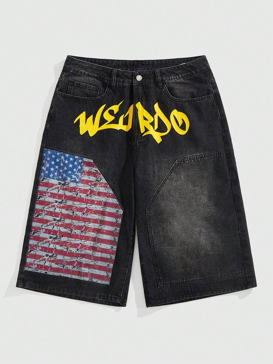 Street Life Men's American Flag & Letter Print Denim Shorts