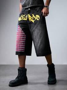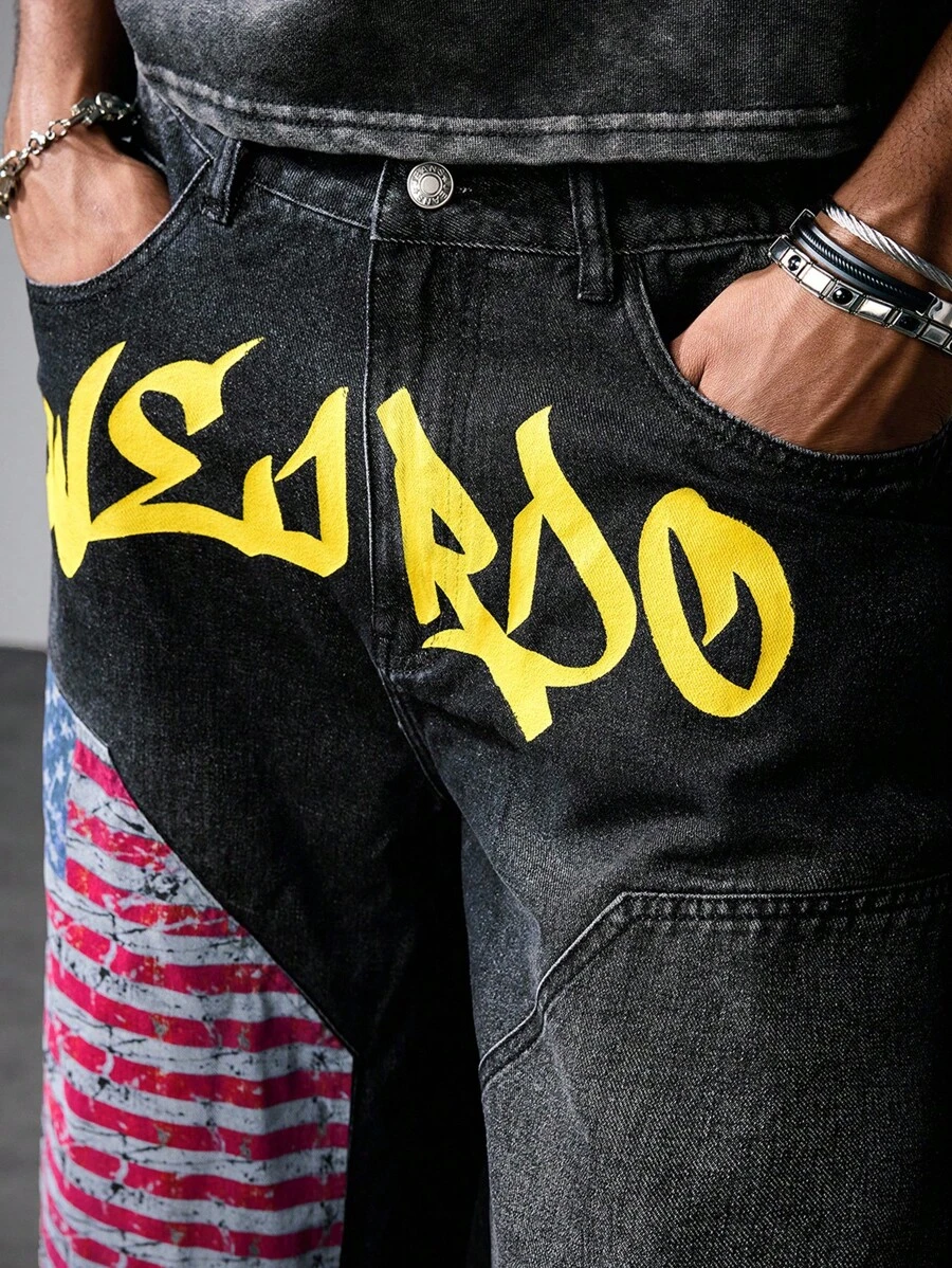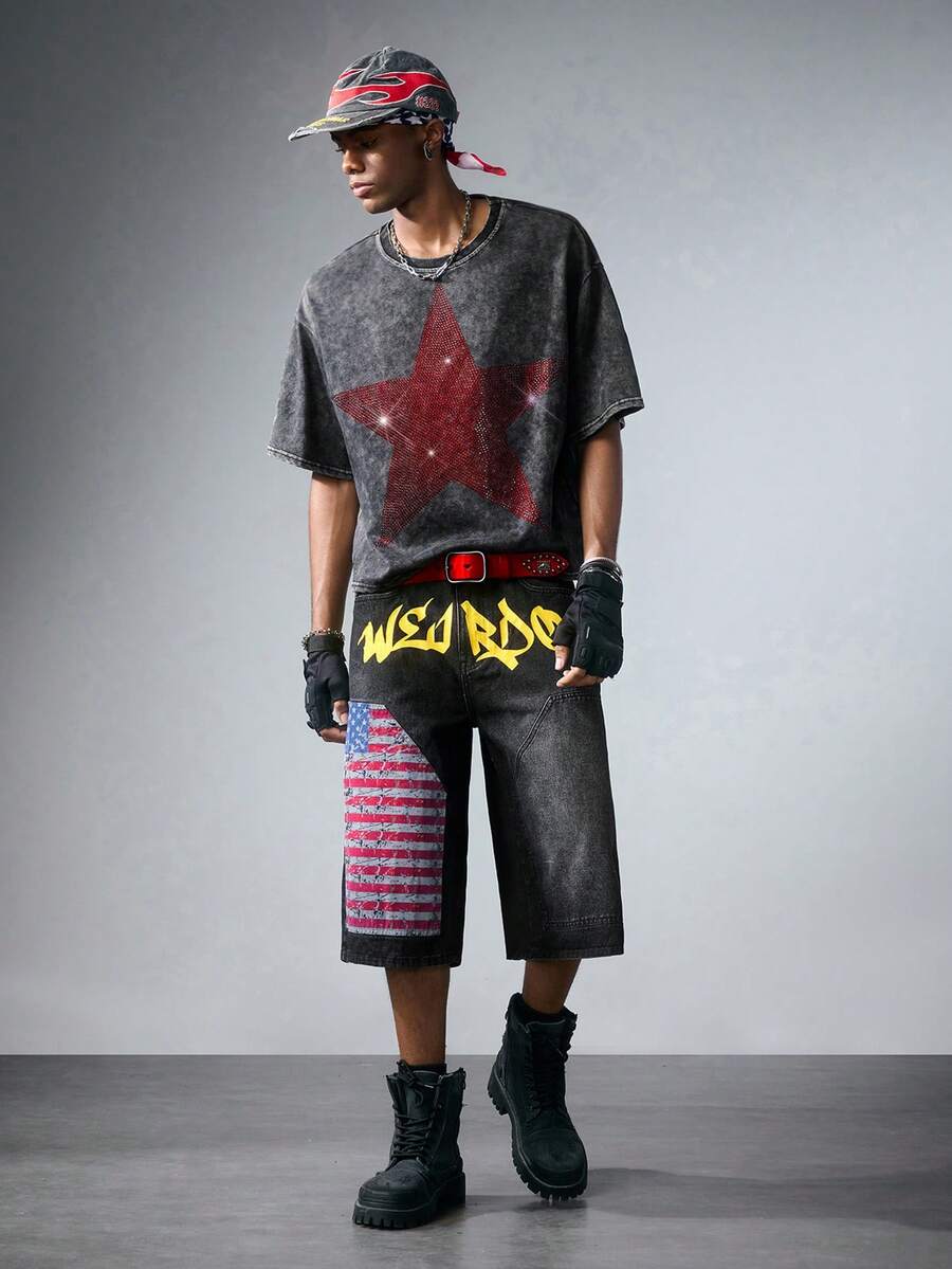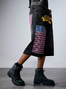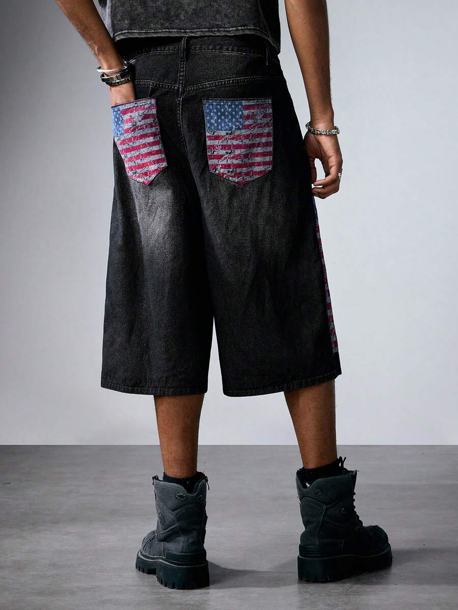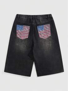 Street Life Men's American Flag & Letter Print Denim Shorts