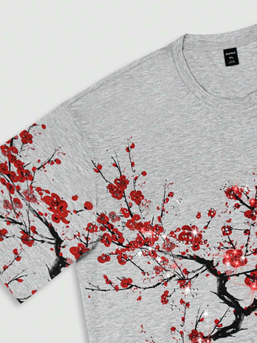 Men's Anime Floral Print Short Sleeve T-Shirt