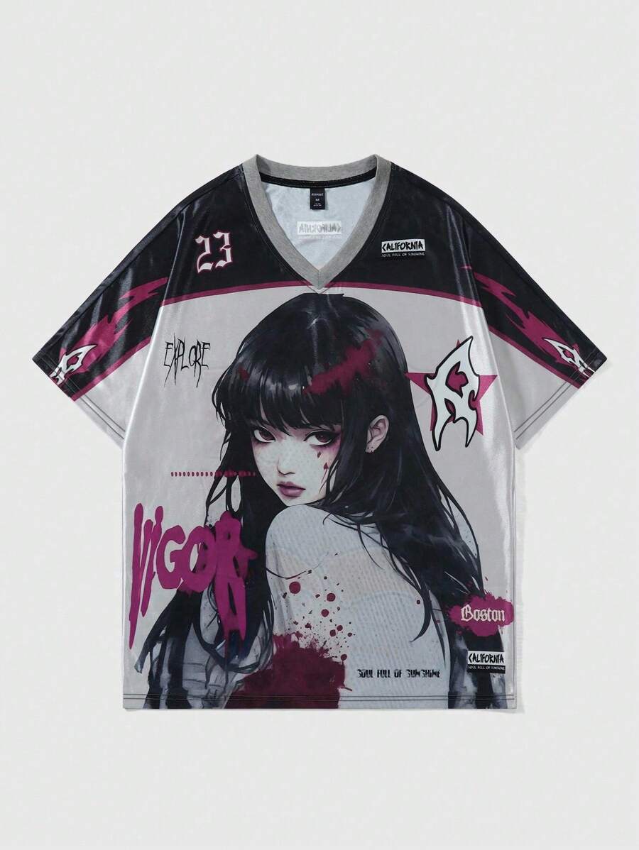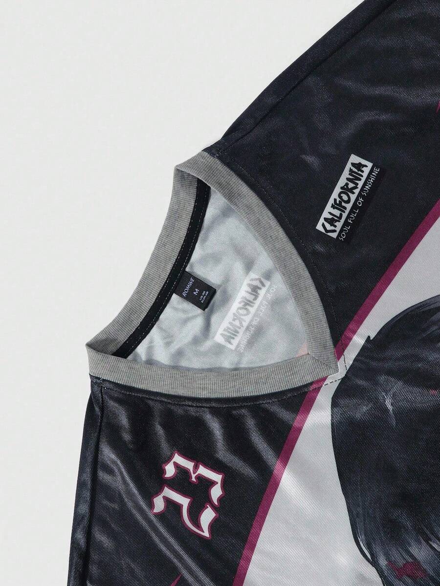 Men's Anime Print Short Sleeve T-Shirt, Suitable For Spring/Summer, 2000s Style