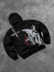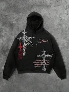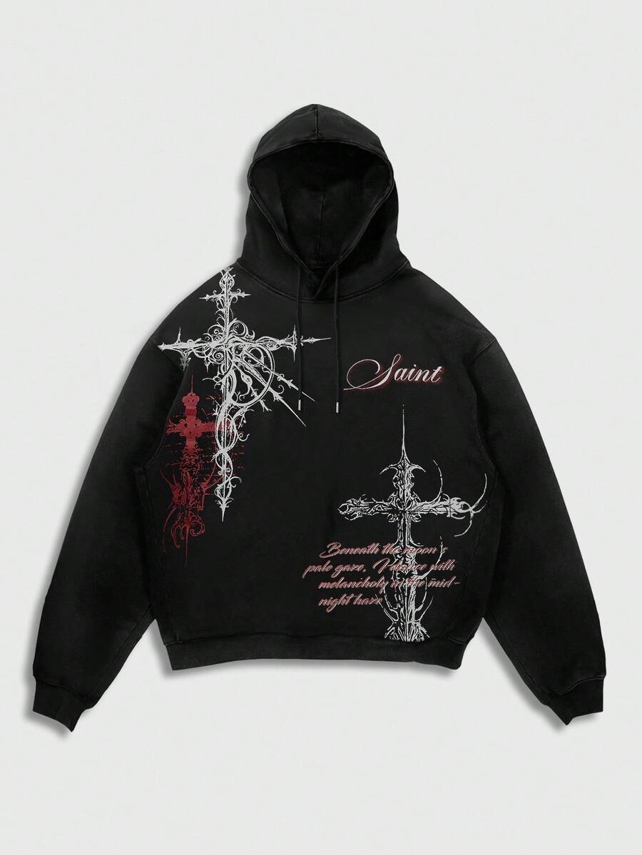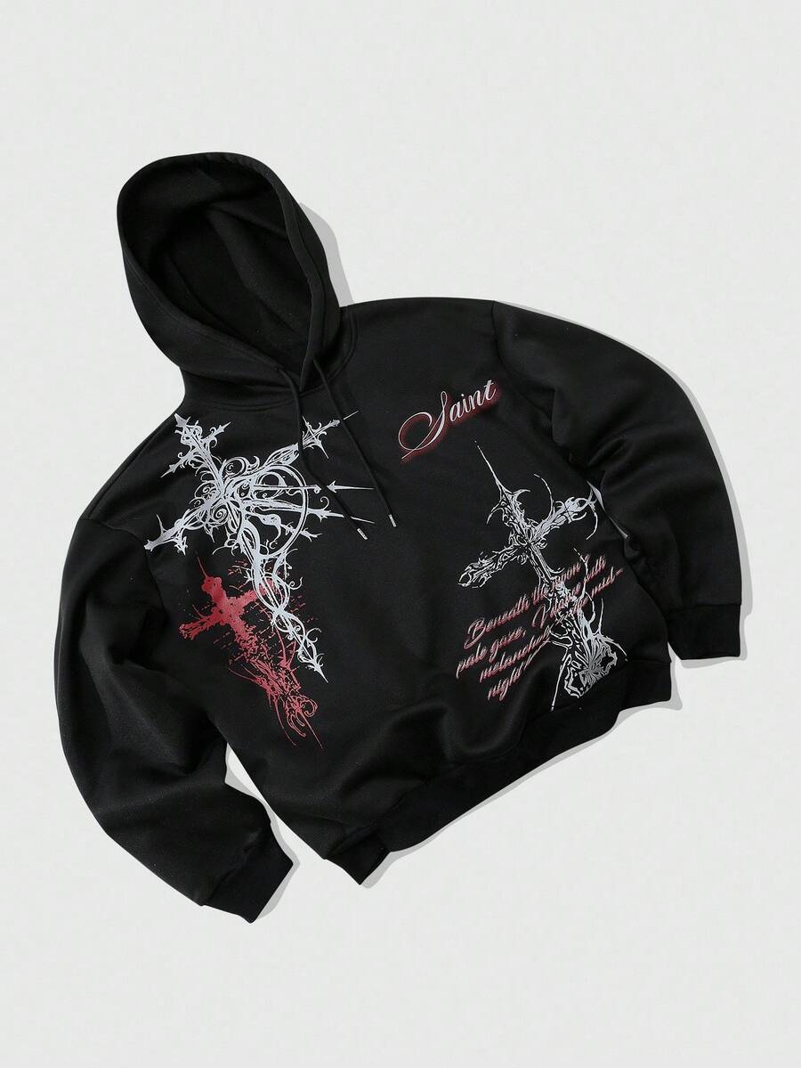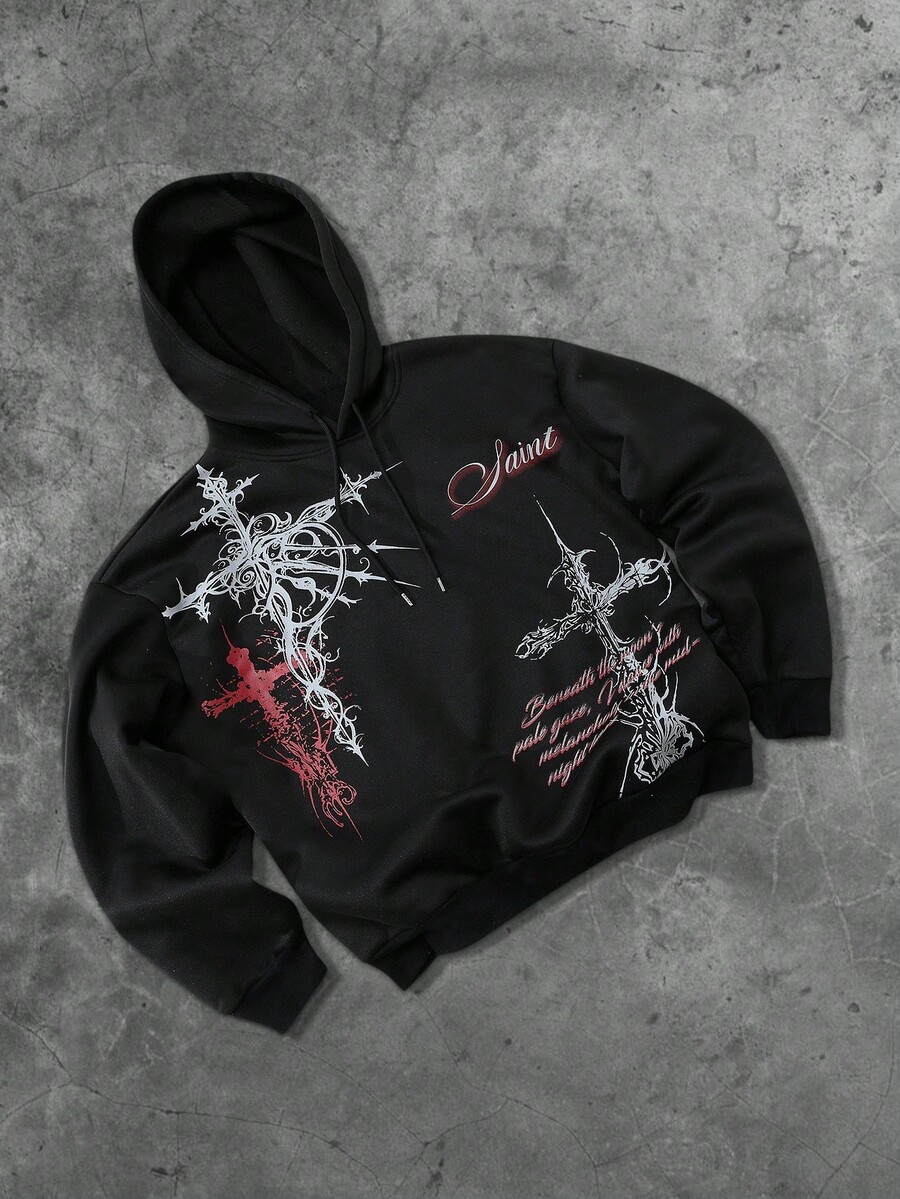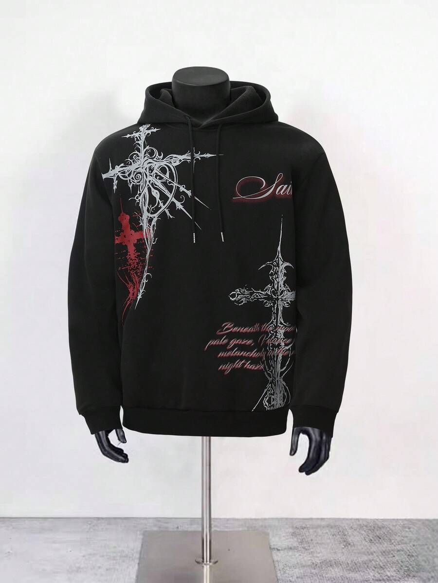 Street Life Men's Autumn Cross Print Drawstring Hooded Casual Sweatshirt
